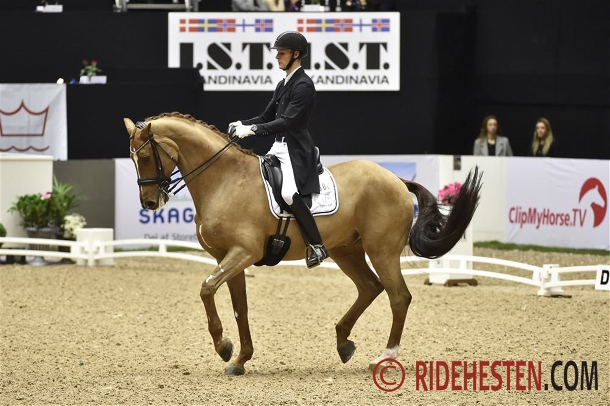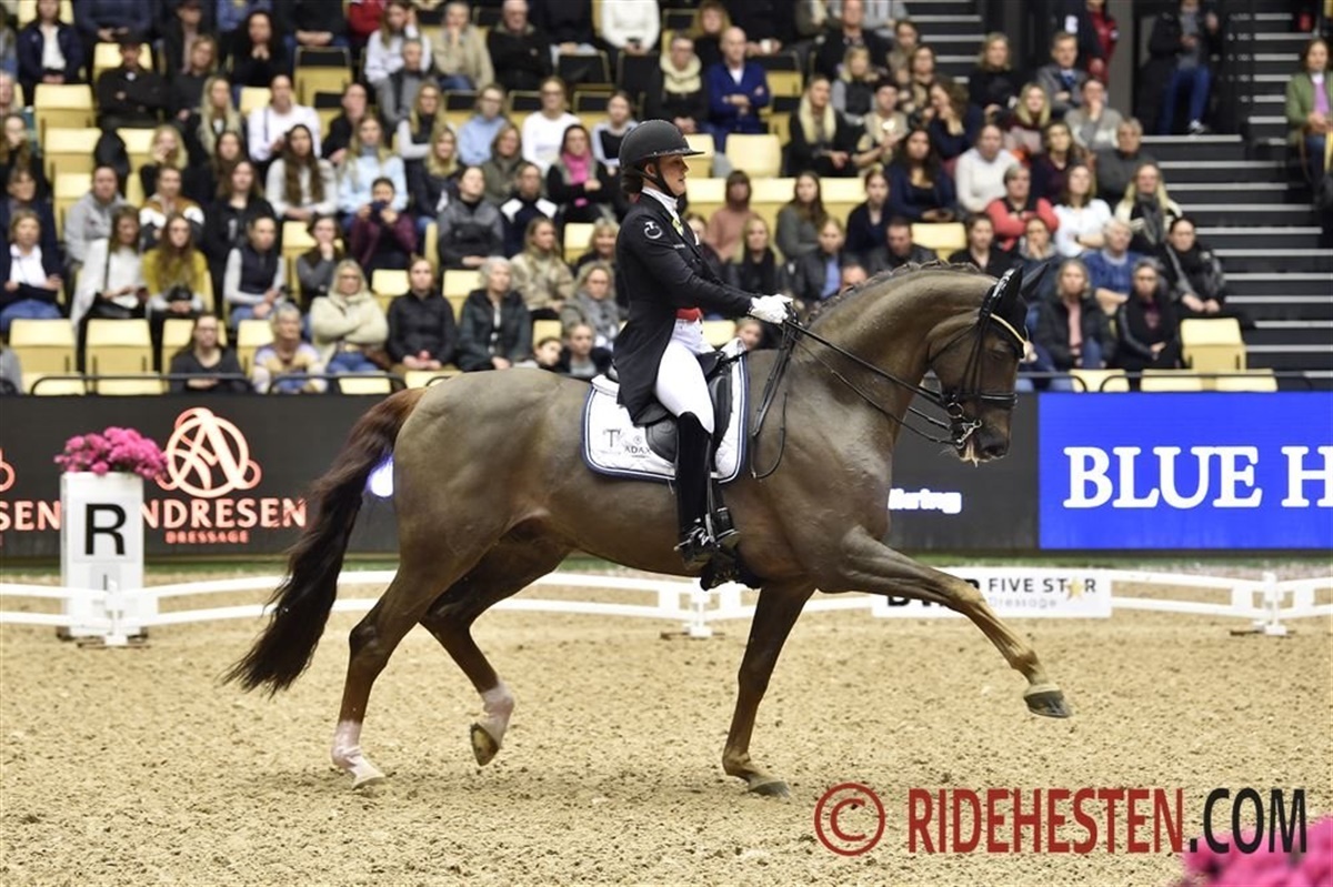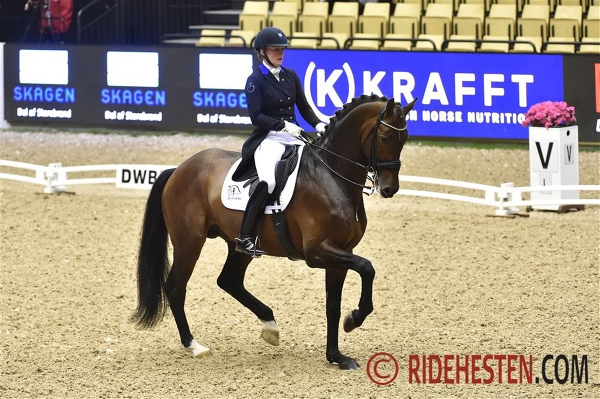 Cathrine Dufour kom på Bohemian e. Bordeaux/ Samarant ind som allersidste ekvipage i klassen, så spændingen var sat til det sidste. Parret kom superflot fra start med både indridning, fri trav og sidebevægelser. Måske lidt ud af rytmen i den første piaffe, men det fik de rettet op på senere, og passagen var hamrende flot, regelmæssig og udtryksfuld. Etter- og toer-changementerne var fuldstændig fejlfrie, gennemsprugne og regelmæssige. Ved den sidste passage op ad midterlinjen begyndte publikum at klappe, hvilket var lige ved at blive for meget for Bohemian, men det gik, og ekvipagen skridtede ud af hallen til stående bifald. Og med rette, for scoren tikkede ind på hele 82% og dermed en førsteplads med over 4% ned til andenpladsen.