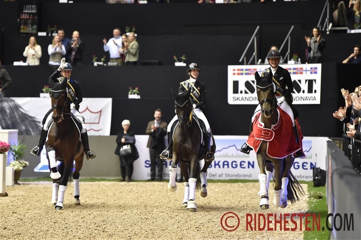 De tre bedst placerede i klassen blev da også netop de dygtige danske dressurdamer, som det seneste lange stykke tid har haft enorm succes, seneste til World Cup-kvalifikationen i Neumünster. Med ingen tyske top-ekvipager til start kunne de danske ryttere da også virkelig "komme til" i toppen, og det gjorde de.