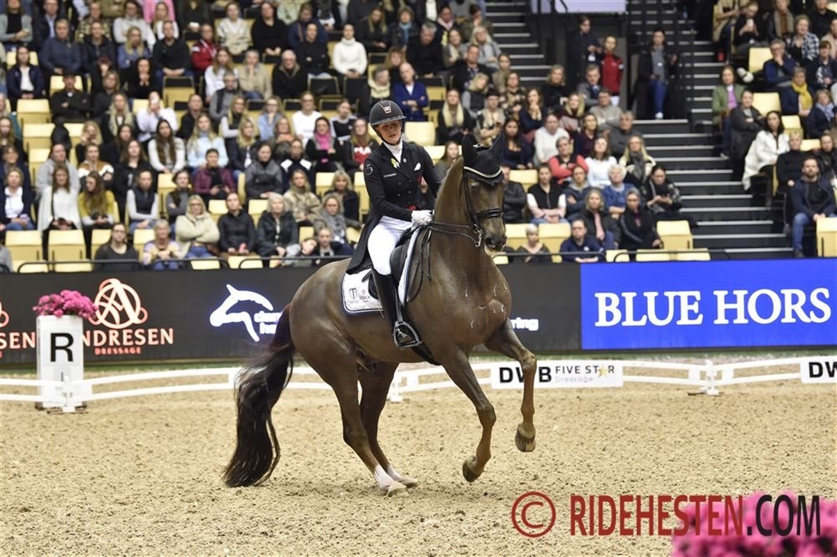 Tidligt i klassen var Nanna Skodborg Merrald til start på Blue Hors Zatchmo e. Blue Hors Zack/ Donnerhall II. De to havde en rigtig flot og sikker tur uden fejl og med mange højdepunkter, som gav dem hele 75,826%, hvilket var deres personlige rekord i Grand Prix og sikrede dem tredjepladsen i klassen.