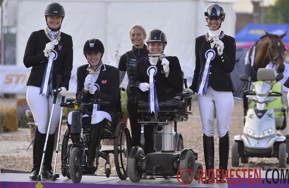 Det danske Para-dressur hold vandt sølv ved det seneste EM i Göteborg med Stinna Tange Kaastrup, Tobias Thorning Jørgensen, Susanne Jensby Sunesen og Annika Lykke Dalskov Risum på holdet. I år har landstræner Astrid Gemal måttet sammensætte et næsten nyt team, i hvert fald er der ændringer både bandt ryttere og heste. Selvom sammensætningen er ny, så kommer holdet til EM i Rotterdam med en frisk sejr ved Nordisk Mesterskab på Vilhelmsborg i bagagen. Guldholdet: Tobias Thorning Jørgensen, Caroline Cecilie Nielsen, Camilla Christensen og Line Thorning Jørgensen får følgeskab af Katrine Kristensen samt Renee Igelski som reserver, fortæller landstræneren.