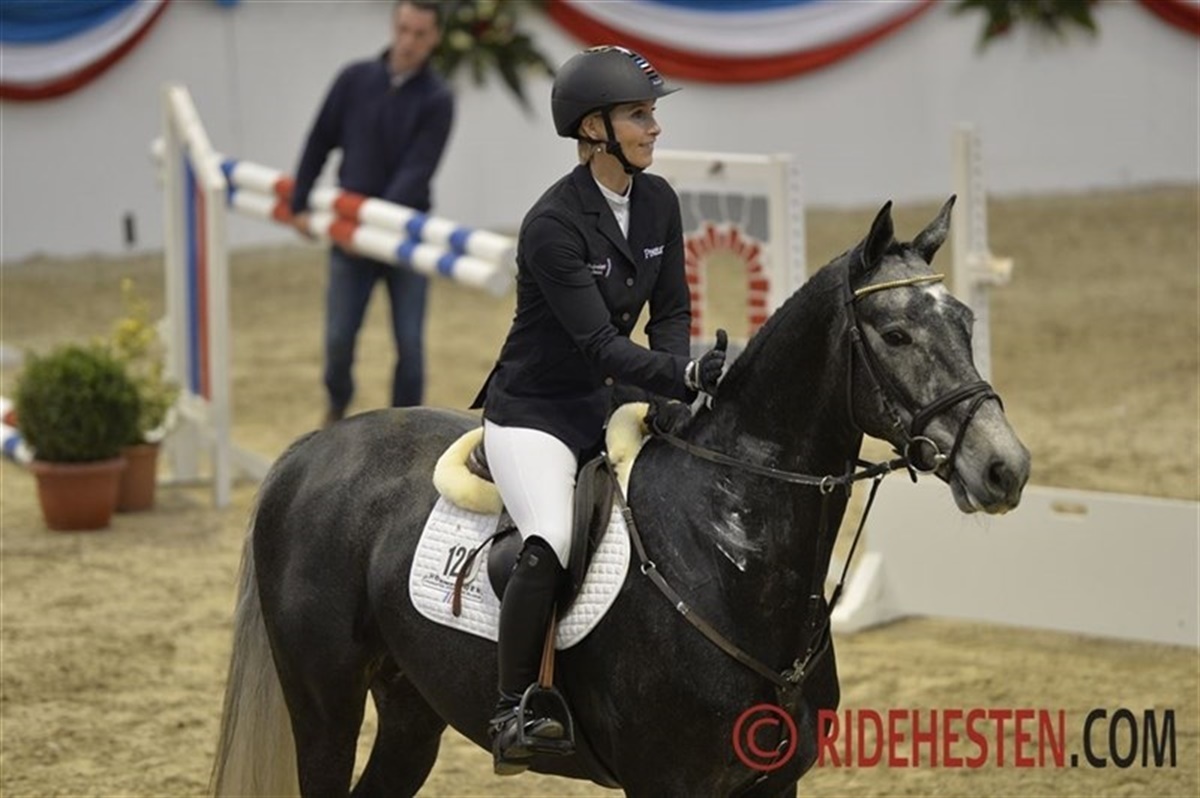 Stemningen var elektrisk da kat. 120 blev redet ind i hallen i Neumünster - Clover e. Colman/Baloubet du Rouet er opdrættet af Karen Kappel på Stutteri Mariendal ved Haderslev, og den 5-årige vallak blev fredag sprunget for publikum i hallen af Jennifer Fogh Pedersen, da efterfølgende bemærkede, at den ville hun meget gerne have i stalden. Han viste ogå helt overordentlig imponerende springning med super teknik og en dejlig praktisk galop. Han er i øvrigt ud af samme hoppestamme, som også har givet den kårede hingst Lucky Light. Smuk og ædel er han også og i dag kunne auktionarius Uwe Heckmann slå auktionshammeren i podiet da prisen nåede 72.000 Euro.