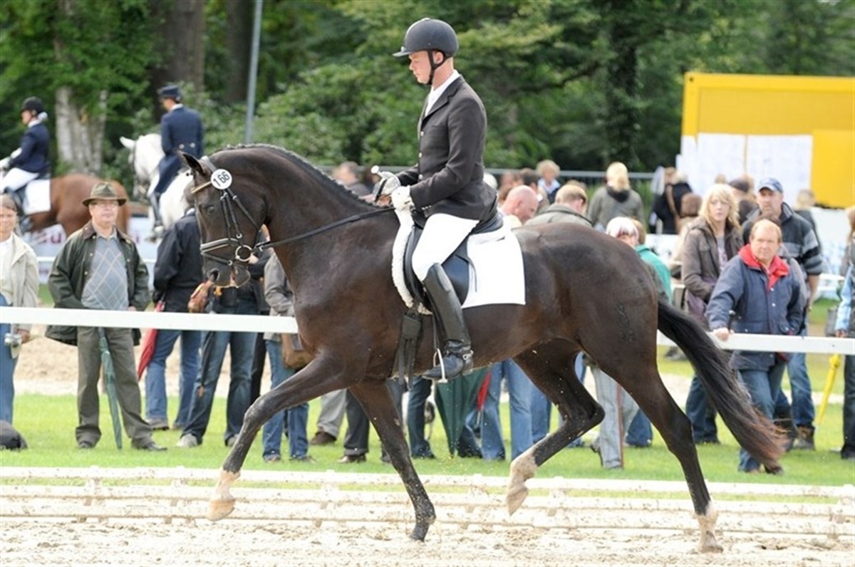Aldrig tidligere har nogen dansk avlshingst haft så vidtrækkende international gennemslag som Årets Hingst 2010 i Dansk Varmblod, 11-årige Blue Hors Don Romantic, der igen i år har haft afkom med helt fremme i både Danmark, Sverige og Tyskland. I sidste uge købte den tidligere landsholdsrytter i dressur for Tyskland, Ann-Kathrin Linsenhoff, et hoppeføl e. Don Romantic /Fürst Heinrich ved oldenburgerforbundets sommerauktion i Vechta. Med hammerslag på 20.000 euro blev Die Fürstin det næstdyreste solgt på auktionen. Ved denne uges hoppematerialprøve i Vechta prægede Don Romantic igen billedet. Han har i år otte statspræmierede døtre i oldenburgforbundet og hele fem er udtaget til forbundets eliteskue i Rastede den 22. juli, hvor også staldkammeraterne Hotline (2), Don Schufro (1) og Romanov (1) stiller med døtre. De danskejede hingste Samarant og Quidam de Revel har også hver en datter udtaget til Rastede, lige som den danskejede hoppe ERA Wunderschöne e. Sunny-Boy/Donnerhall er udtaget til eliteskuet og dens føl efter Blue Hors Zack er udtaget til elitefølauktionen i Vechta i august måned.