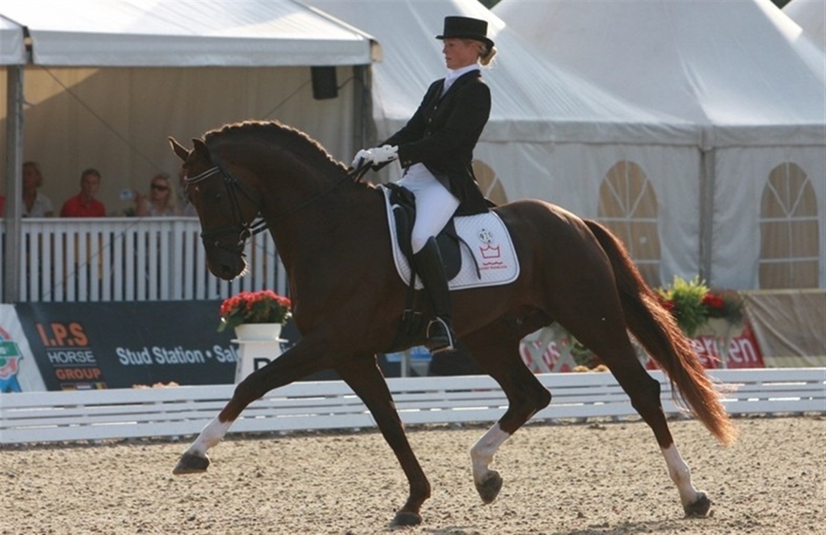 Snusfornuftigt red Lotte Skjærbæk hingsten Skovens Rafæl lidt konservativt i den indledende runde og det gav bonus med et flot og uforceret ridt på en tydeligvis meget let ridelig hest. Det er ikke ønskestarten at skulle starte som nr. 1, men trods det utaknemmelige startnummer lykkedes det den danske ekvipage at få dommerne til at ryste op med karakteren 9,0 for galop! Lotte Skjærbæk og Skovens Rafæl opnåede en slutsum på 8,44 og fører indtil videre klassen, idet de vandt første afdeling og dermed er sikret en plads i lørdagens finale. 5-årige Skovens Rafæl er ejet af Lindgren & Skjærbæk og opdrættet af Kirsten B. Hansen og Jens Lund Pedersen. Han er efter Blue Hors Romanov med Blue Hors Don Schufro som morfar. Svenske Anna Blomgren, der rider for Helgstrand Dressage i Danmark, har under svensk flag fået wild card fra det Rheinlandske avlsforbund til at starte Andreas Helgstrands avlshingst Lætare, og ekvipagen opnåede 7,62 point. Andreas Helgstrand selv rider to danske heste i 5-års klassen senere på dagen, ligesom Maria Louise Andersen på Karina Lihmskov.