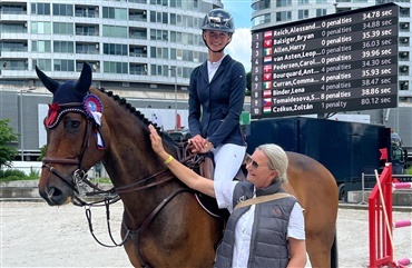 – Det er første gang, jeg er i USA. Min mor, far og træner kunne ikke komme, så jeg er taget afsted helt alene i to uger, fortæller juniorrytteren, som heller ikke selv har taget heste med på turen. Hun har fået to heste stillet til rådighed af Ole Strigel. Den hest, hun skal ride nationsspringning på, hedder Caldonado og er en 9-års holstenervallak e. Clinton/Landgraf I, som tidligere er blevet redet på dansk grund af Jennifer Pedersen.
