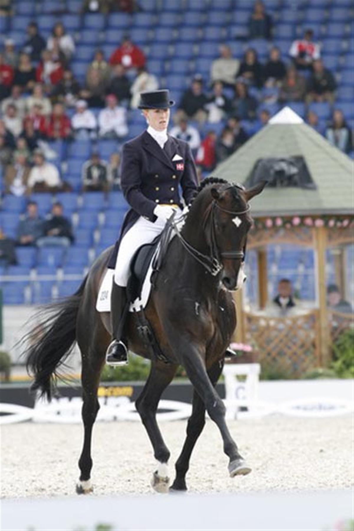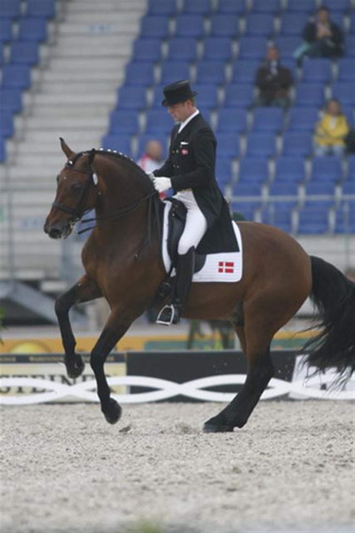 Den første afdeling af holdmesterskabet i dressur blev afviklet i dag. Det var Anders Dahl og Afrikka, som lagde ud, som første mand på holdet. Et fejlfrit ridt gav ham 66,458% og så hvilede hele presset på prinsesse Nathalie, der rider sin kun 9-årige vallak Digby. Hendes p.t. bedste hest Rigoletto, begge opdrættet af HKH Prinsesse Benedikte er skadet, og derfor måtte Digby træde til som reserve. Det startede fantastisk for Nathalie, der længe lå placeret på en andenplads med knap 69%, men så stod Digby pludselig stille i den anden piaffe og der kom også en fejl i toerchangementerne. Parret sluttede med knap 67%. Efter to ryttere fra hver nation fører Tyskland efter et flot program af Heike Kemmer/Bonaparte til 75,79% og Hubertus Schmidt/Wansuela Suerte til 69,208%. Holland ligger på andenpladsen, med England på en tredjeplads. Det danske hold ligger på en foreløbig 6. plads. Guldet bliver en kamp mellem Holland og Tyskland, mens bronzen ser ud til at skulle afgøres mellem Sverige og USA. 29.500 tilskuere overværede dressuren.