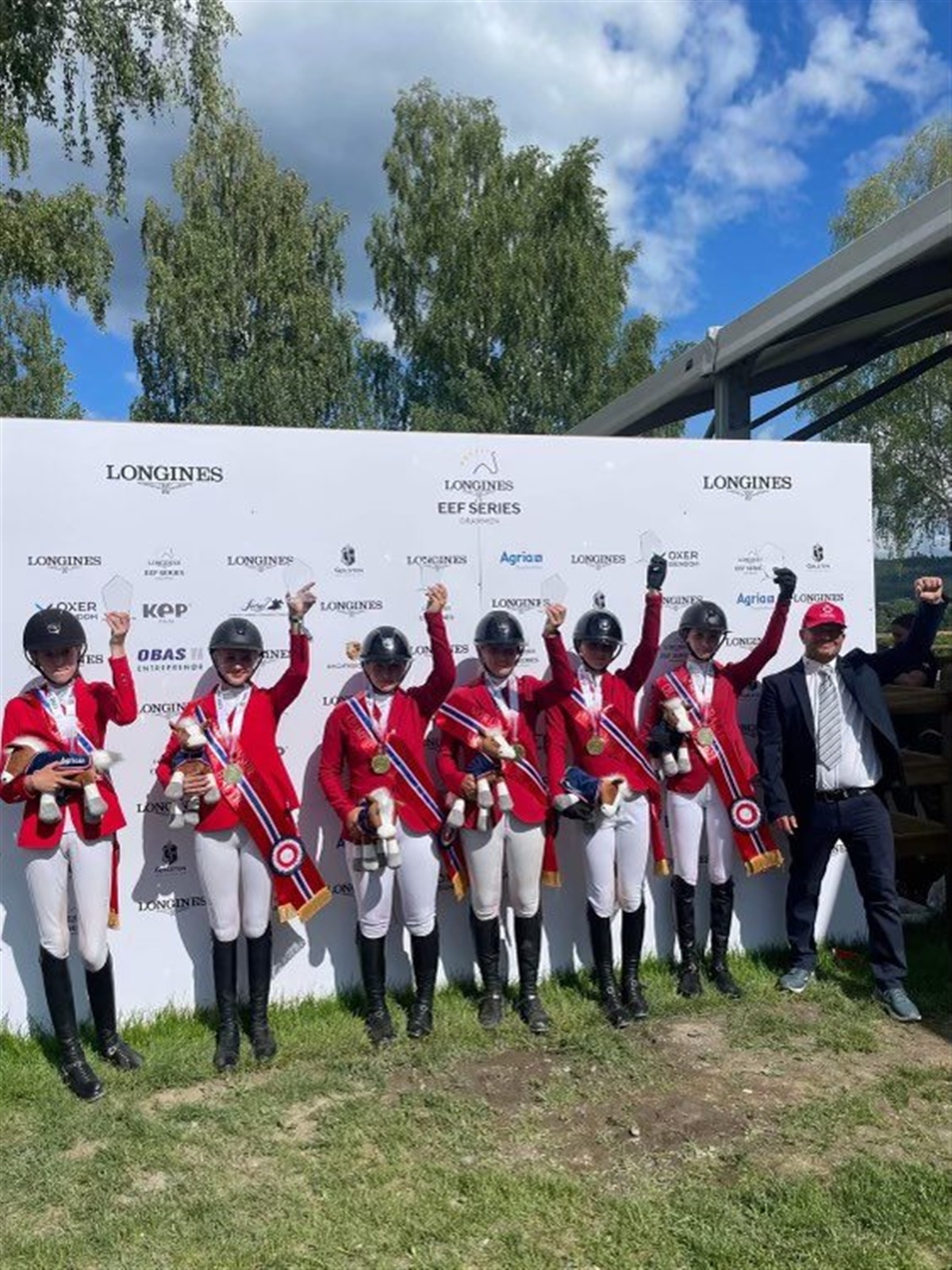 Hos springrytterne sikrede kategori I-ponyrytterne sig i dag en flot guldmedalje. På dette hold red Laura Sargent, Klara Mie Snebjørn Poulsen, Malou My Sohn-Henriksen, Olivia Dresler og Amalie Sophia Laursen.