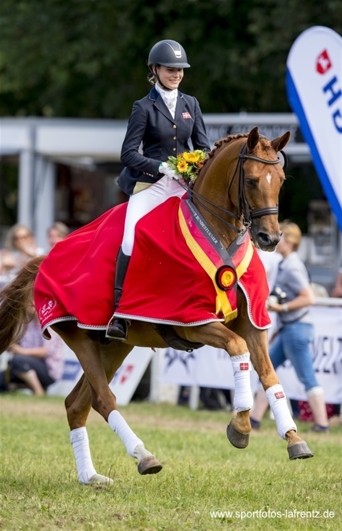 Natalie er i sit første år som juniorrytter og har i den forbindelse fået stillet Kaj til rådighed. Hun har med succes været en del af den danske ponylandsholdstrup de sidste tre år, hvor hun har deltaget i mesterskaber og internationale stævner i Europa. Netop den erfaring og rutine Natalie har opnået derfra, kunne hun drage nytte af den forgangne weekend, hvor det blev til tre sejre i alt ved det internationale Trakehner Bundeschampionat i Hannover.