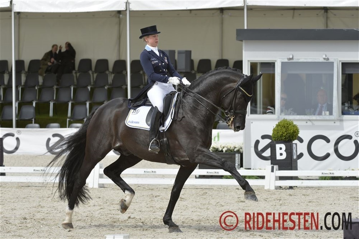 Så var der pludselig kun et point mellem Danmark og Sverige, der stod med hhv. 18 og 19 points, med Therese på en foreløbig førsteplads, som giver 1 point og Daniel Bachmann Andersen som sidste rytter, var der maksimalt pres på Daniel og Blue Hors Don Olymbrio. De havde dagen forinden vundet Grand Prix-klassen, men et svensk ridt på godt 77% det er imponerende i international sammenhæng.