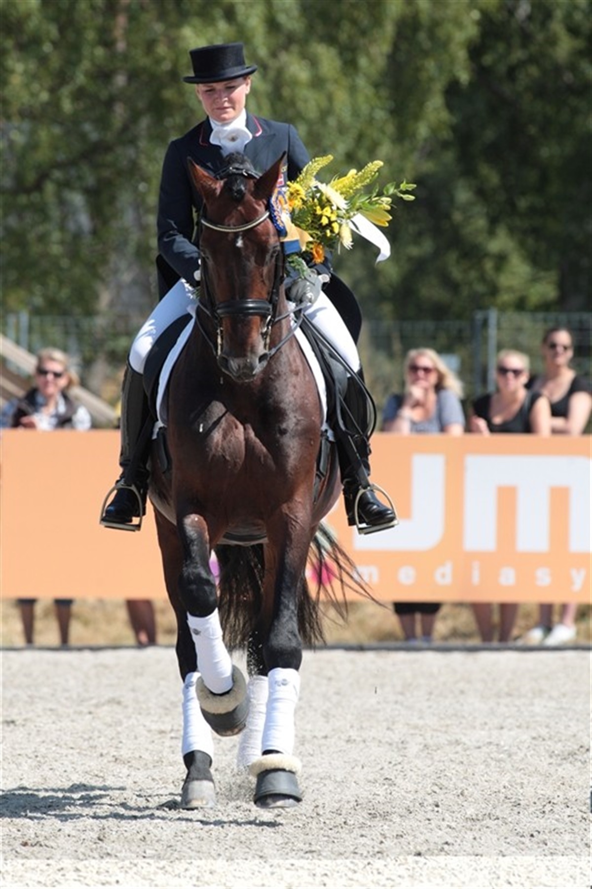 Ti ungryttere mødtes i en klasse udskrevet kun for dem, en Prix st. Georges, der åbnede dagens konkurrencer på det flotte dressurstadion i Falsterbo. 20-årige Camilla Ploug Larsen og Königs Kronos KS havde fået plads i startfeltet, der rummede Sveriges bedste ungryttere. Camilla red et flot program, med stor sikkerhed i bl.a. changementsserierne, og det kunne de svenske ungryttere ikke matche. Sejren blev Camillas med 65,35% foran Sanna Edsmar og den svenskopdrættede Pay Back TP efter Come Back II med 64,56%