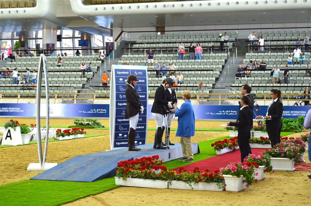 Ved Al Shaqab International Horse Show i Doha, Qatar, er tre paradressurekvipager til start. Fredag startede grad II-rytteren, Caroline Cecilie Nielsen på Leon e. Lord Swiss/Scampolo, ud med at ride 70,810% hjem, som resulterede i en andenplads i klassen. Herefter fortsatte IV-rytteren Camilla Christensen på Østergaardens Delight e. De Noir/Weinberg, de gode takter og vandt sin klasse med 69,167%, hvorefter Susanne Jensby Sunesen på Thy's Que Faire e. Quite Easy/Ladoga, fulgte trop og vandt grad III-klassen med hele 72,886%. Det betød at med torsdagens og fredagens resultater, red det danske hold sig ind som nummer to i holdkonkurrencenm, hvor Holland blev nummer et og Tyskland nummer tre.