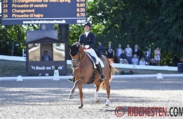 Berider Karin Nissen sørgede for andenpladsen sammen med Eno e. Eskadron/Pardon, der i dag opnåede 68,630 %, mens tredjepladsen gik til svenske Gunilla Byström på Vectra. Fjerdepladsen tog Carina Cassøe Krüth og den brune DV-hoppe May-Day Graftebjerg e. Dream Of Heidelberg/ Vemmetofte Rainman (opdr. Arne Bjerg-Nielsen) med den fine score af 68,065%, mens også femtepladsen gik til en dansk rytter, nemlig Nikolai Kowalski på DV-hoppen Gevelts Donna Tella e. Don Schufro/Warkant, der opnåede 67,196%.