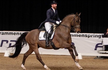 Den tidligere danske OL-rytter Per Sandgaard, der nu er svensk statsborger, lagde sig i toppen som eneste rytter med over 70% i dagens Grand Prix. Sammen med den 11-årige vallak Charmeur e. Krack C/Gribaldi leverede Per Sandgaard et flot ridt med flere højdepunkter, der af dommerne blev honoreret med intet mindre end 70,174 %.