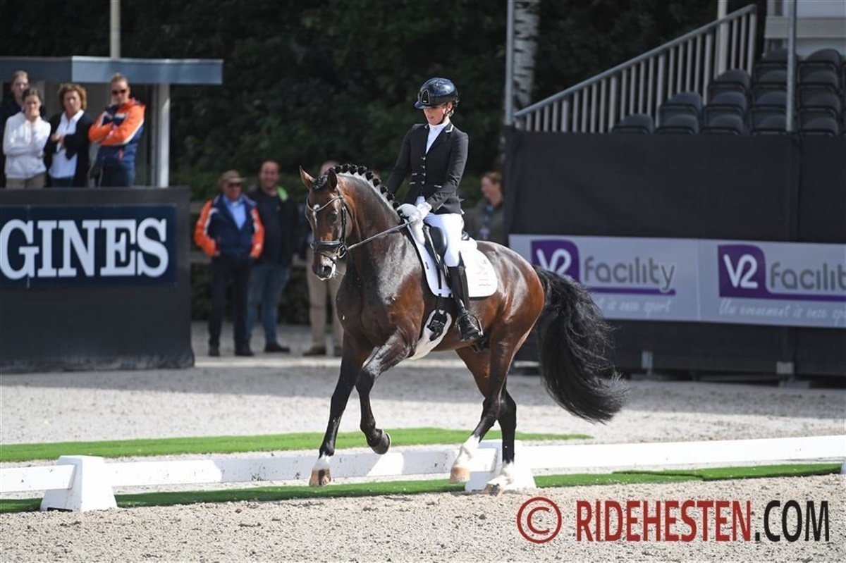 Schweiziske Philine Brunner, der ejer flere dansk varmblodsheste, som hun var redet ved UVM og har uddannet videre i sporten, viste i dag sin 5-årige DV-hoppe Terpling's Ravena DWB e. Revolution/Weltjunge (opdr. Heima Poulsen). Som højdepunkt fik hoppen 8,0 for galop og ellers 7,6 for trav, 7,4 for skridt, 7,8 for ridelighed og 7,7 for kapacitet.