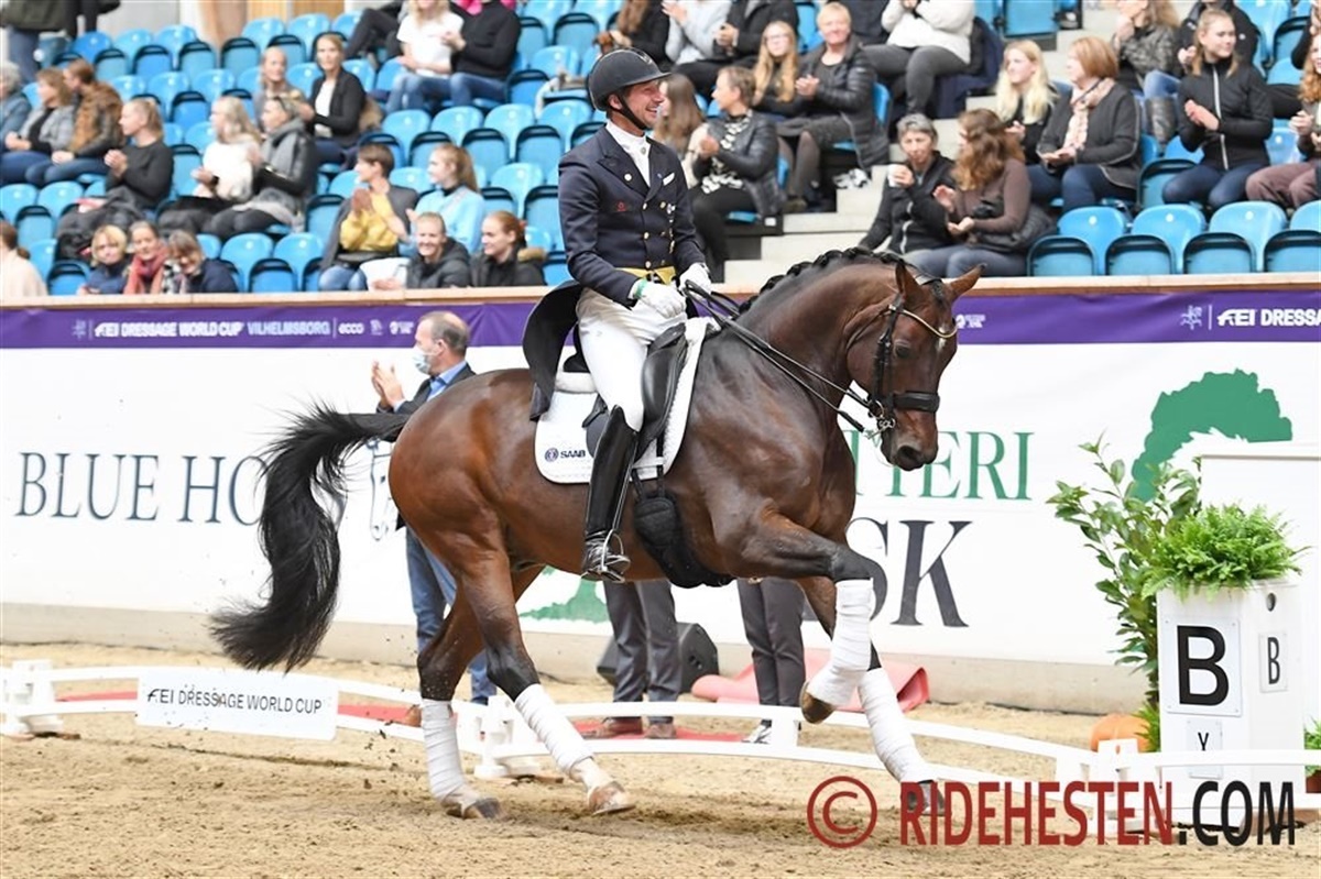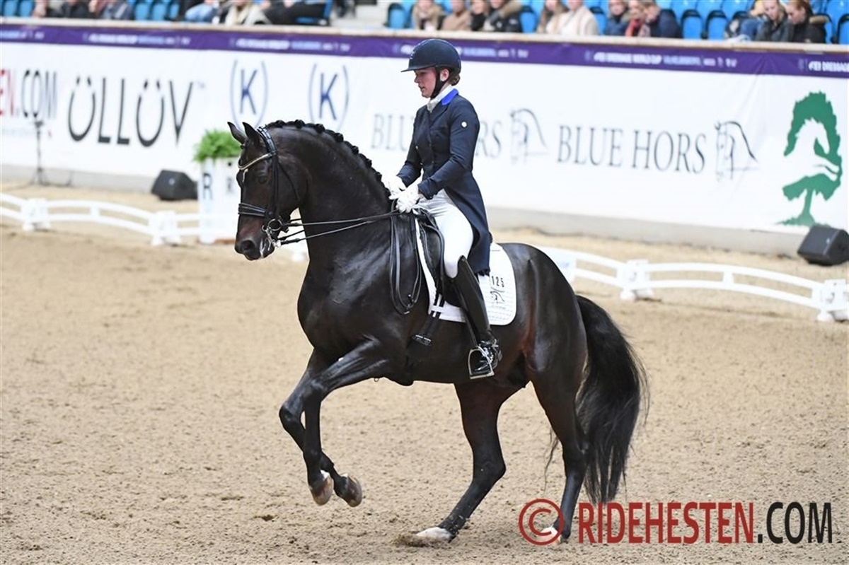Nanna Skodborg Merrald, der rider for Blue Hors kom til start i lille tur med avlshingsten Blue Hors Farell e. Fürstenball. Det er ikke mange stævner, de to har haft sammen, men de er ved at finde ind i et godt makkerskab. I går kom de ind på tredjepladsen, og lå i dag til en absolut topplacering. I travprogrammet fik de flere 8-taller og enkelte 9-taller, da en misforståelse resulterede i karakteren 0 et af changementerne i galopprogrammet - og det blev for dyrt i det skrappe selskab. De sluttede på fjerdepladsen med 71,55%