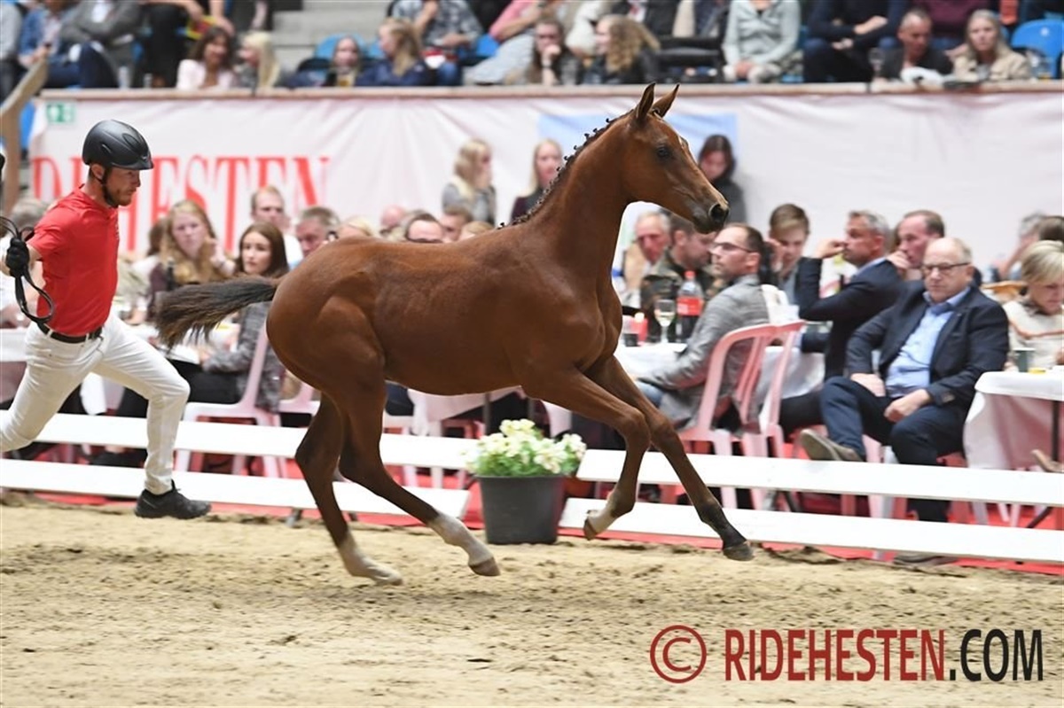 Med ny adresse i Tyskland blev det dejlige hingsteføl Fredensdals Just Perfect e. Jameson/ De Noir (opdr. Linda Falensten og Martin strande) efter nogle friske bud fra bl.a. Frankrig solgt for 30.000 EUR (ca. 223.000 DKK).