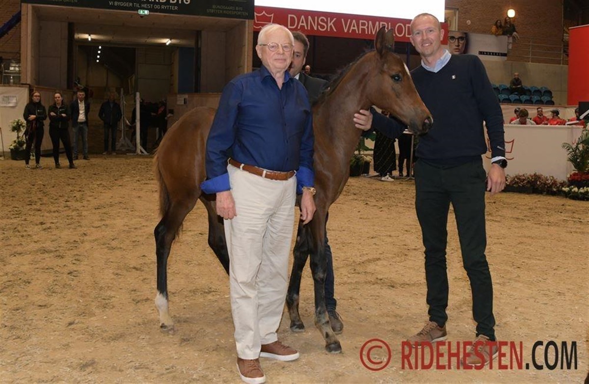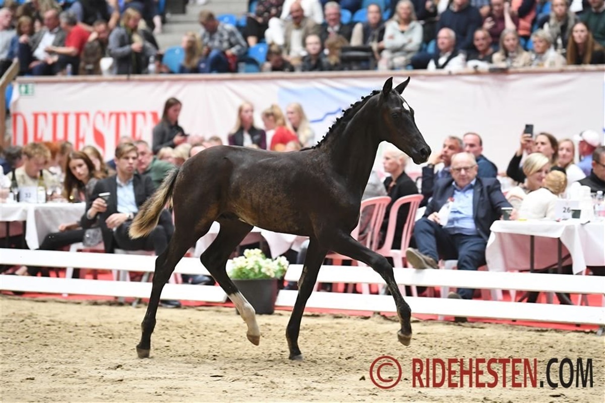 Det besnærende sorte hingsteføl Sandbæks Rio-Monte Vino e. Blue Hors Monte Carlo TC/ Fürstenball (opdr. Stald Vestervang) fik bud fra forskellige tyske interessenter over internettet og skiftede ejer for 41.000 EUR (ca. 305.000 DKK).