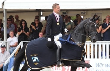 Ved kåringen i Vechta i går gik fløjpladsen ikke uventet til Fynch Hatton e. Formel Eins/ Sir Donnerhall I, der er blevet stærkt markedsført i forbindelse med auktionen, der finder sted kl. 15 i dag. Begge danskejede hingste er også på auktion i dag.