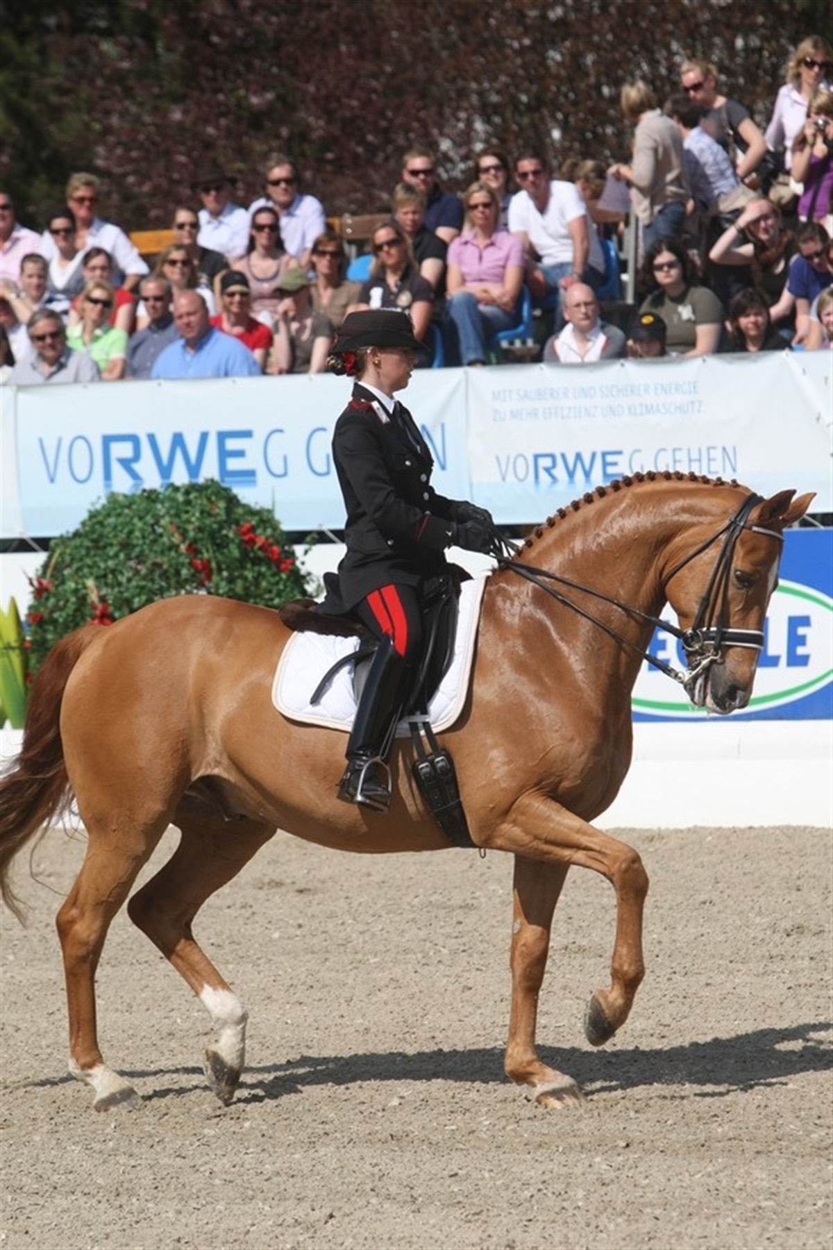 Den unge italienske dressurrytter Valentina Truppa placerede sig som nr. 3 med 74,500% i World Cup Grand Prix Kür i Lyon i fredags efter de erfarne tyskere Isabell Werth og Ulla Salzgeber. 13-årige Chablis, som ofte tidligere har været beskrevet på Ridehesten.com, er efter Castro/Leonardo II og opdrættet af beriderne Vivi og Morten Thomsen. Ved German Classic stævnet i Hannover i Tyskland var det ligeledes en meget ung rytter, der opnåede topplacering på en danskavlet hest, nemlig svenske Nina Hofmann og Leo af Magnushøj, der opnåede en andenplads i Grand Prix. Også denne hest er jævnligt omtalt her på Ridehesten.com pga dens mange internationale placeringer. 15-årige Leo deler i Leonardo II morfar med Chablis. Han er efter Rohdiamant og opdrættet af Stutteri Magnushøj ved Peter Prinds. Nina og Leo opnåede 69,021% og måtte også se sig sluttet af Isabell Werth, der netop efter sin sejr med Warum Nicht i Tyskland fredag kunne rejse til Hannover for at vinde med First Class lørdag. Til gengæld slog Nina og Leo her til morgen den tyske ekvipage i Grand Prix Kür, hvor de opnåede 73,170% og blev nr. 2 efter Helen Langehanenberg med Damon Hill.