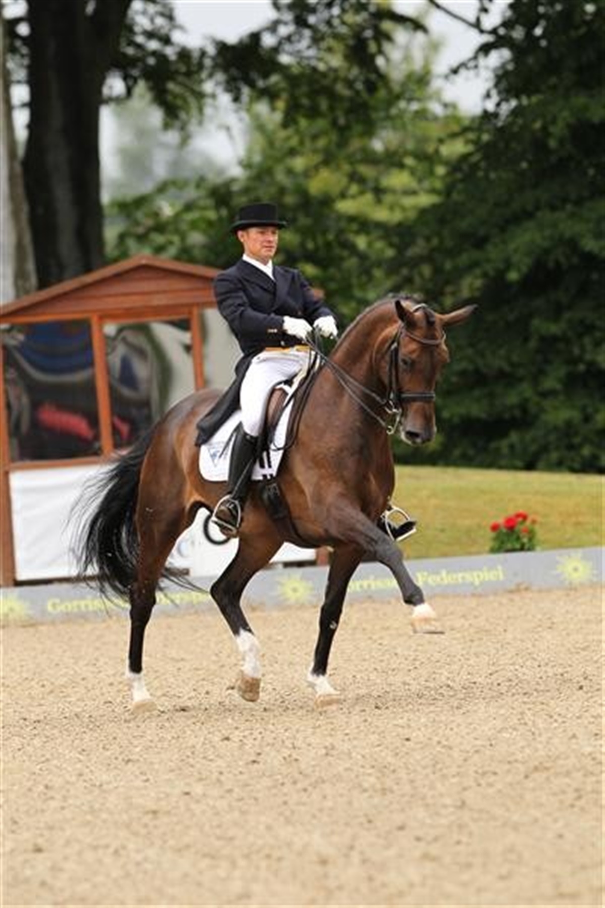 Mandag gik bl.a. Silver Spring`s Prix st Georges, hvor Allan Skov var til start med Dansk Varmblods-elitehoppen, den 10 årige Volstrupgaards Cassiopeia e. Come Back II/Caleto III (opdr. M. og B. Kløve-Mogensen) og Lotte Skjærbæk startede Katrinelunds Elitehingst De Noir e. De Niro/Matcho AA. Det blev til placering til begge heste, Volstrupgaards Cassiopeia blev med 67,316% en flot nr. 2 i klassen, mens De Noir placerede sig som nr. 4 med 64,368 %. Klassen blev vundet af svenske Jeanna Högberg på hoppen Liza Minelli. Elitehoppen Volstrupgaards Cassiopeia er ikke bare en succesfuld konkurrencehest, også i avlen har hun gjort det fantastisk. Hun er bl.a. mor til hoppen Quela VG, der var årets springbetonede 2 års hoppe i 2008, og året efter blev kåret i RDH og tildelt guldmedalje ved Eliteskuet. Som noget helt exceptionelt kan mor og datter begge opleves ved årets Hingstekåring i Herning - Volstrupgaards Cassiopeia skal starte i konkurrenceklasserne og Quela VG deltager i Unghestechampionatet i springning. Det er berider Allan Skov, der skal ride begge heste. Både De Noir og Volstrupgaards Cassiopeia skal også starte i tirsdagens dressurklasser, hvor også danske Bo Høstrup komme til start i Grand Prix'en med den tidligere fløjhingst Cajo.