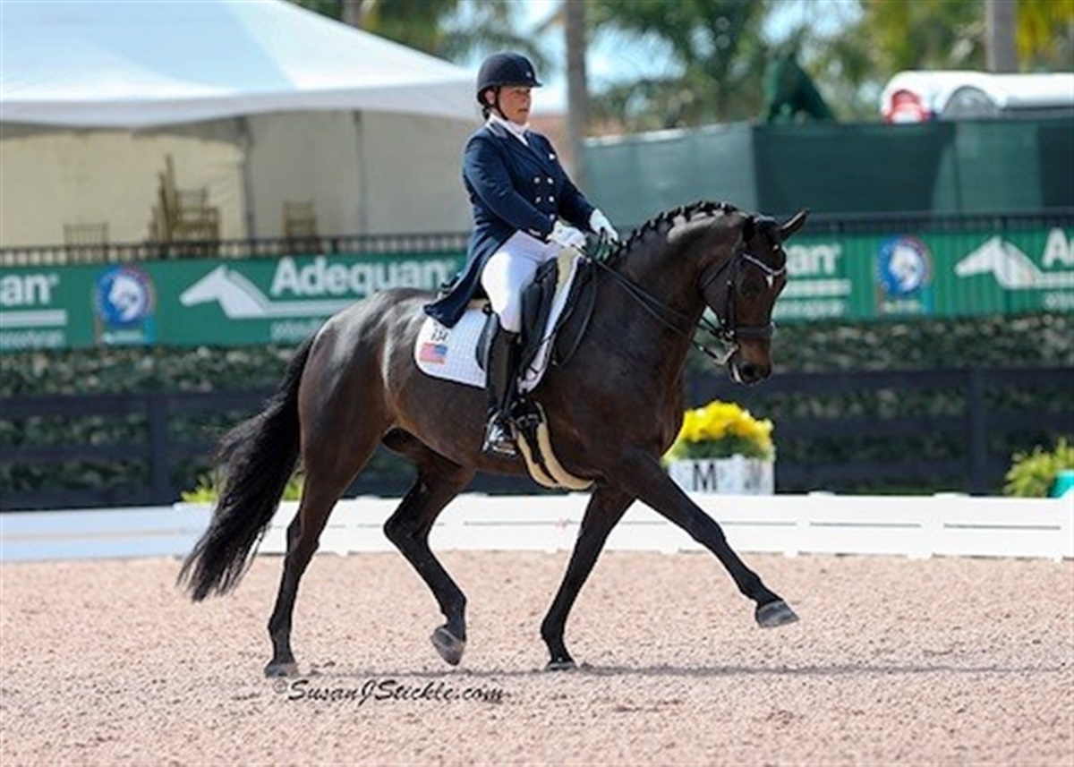 På førstedagen af Stillpoint Farm Nations Cup i Wellington gik sejren i lilletur til amerikanske Kasey Perry, der har flere særdeles gode DV-heste indkøbt hos Helgstrand Dressage. Med Gørklintgaards Dublet e. Diamond Hit/ Ferro (opdr. Jørgen Ravn) vandt hun Prix St. Georges med 73,816% over sin landsmand Kimberley Herslow med Rosentanz-sønnen Rosmarin med 73,684%. DV-hesten Rassing's Lonoir e. De Noir/ Loran (opdr. Jan og Dorte Rassing) fik med Olivia La-Goy Weltz 71,605%.
