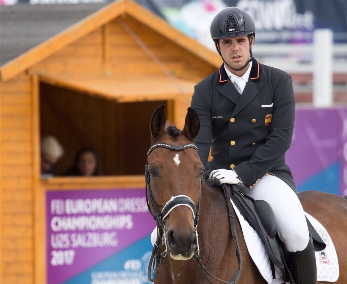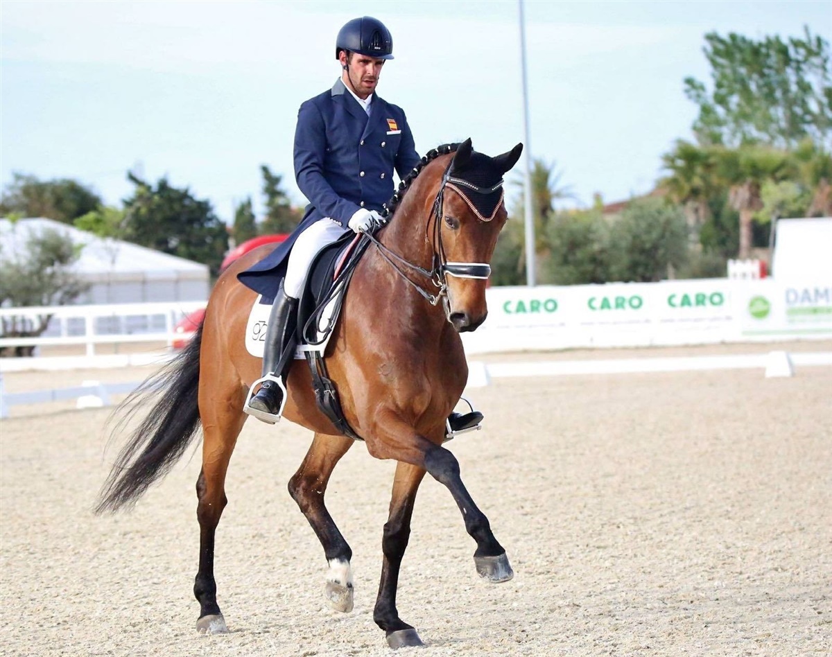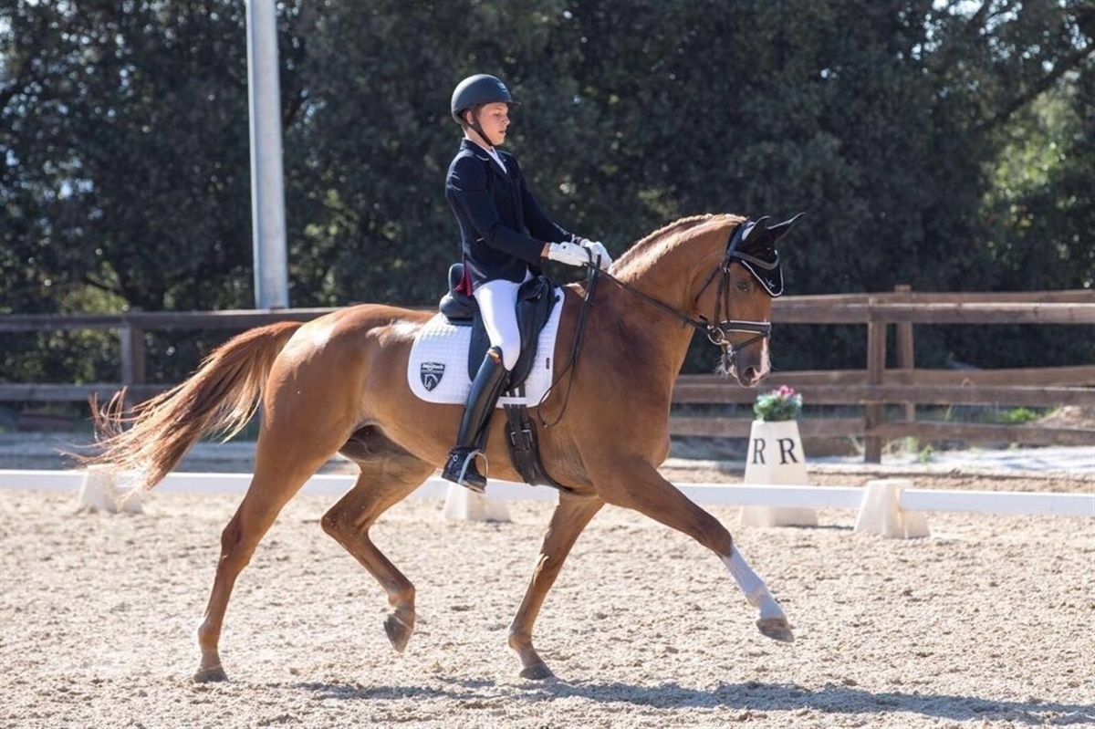 I den imponerende flok af veluddannede rideheste og -ponyer, der findes på Mas Mateu, befinder der sig lige nu tre danske heste. Netop hjemkommen fra U25 EM i Østrig finder vi DV-vallakken Gejlholms Menotti e. Blue Hors Don Romantic/ Master, opdrættet af Michael og Kirsten Sørensen. Menotti er ejet af og rides af Antonio Laiz Zandio. Antonio fortæller, at han købte Menotti i 2014, da vallakken var 7 år gammel. Dengang havde den ikke megen stævneerfaring, men i samarbejde med Lauro er Menotti stille og roligt blevet udviklet. I 2015 blev parret spanske mestre for ungryttere. I 2016 blev det til flere sejre i ungrytterklasserne, ligesom parret repræsenterede Spanien ved EM for ungryttere. I 2017 blev det altså igen til en landsholdsplads til EM, nu som U25-rytter. Antonio og Menotti var en af de få, der nåede at ride U25 Kürfinalen, inden den blev aflyst. 71,6% stod resultattavlen på for parret.