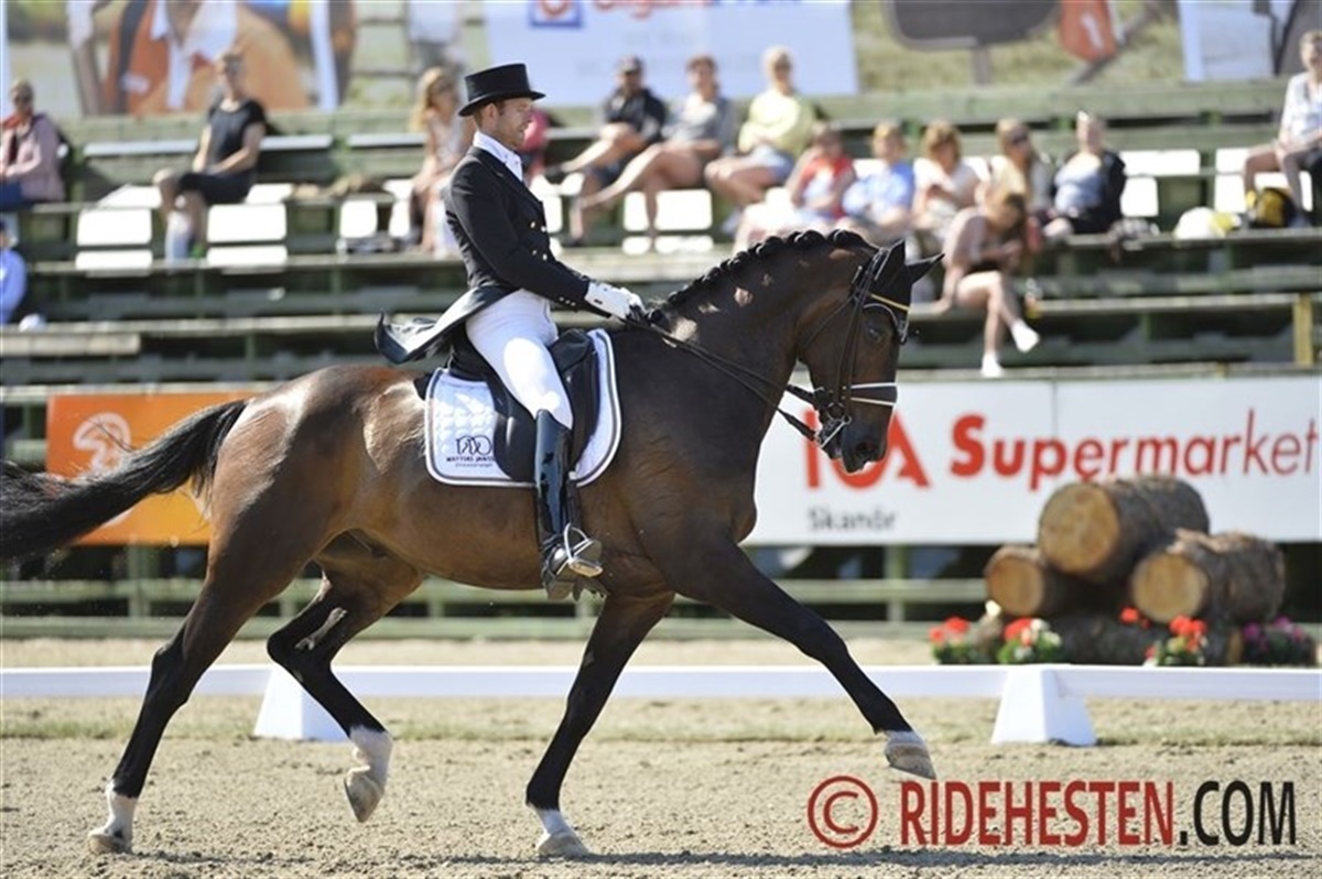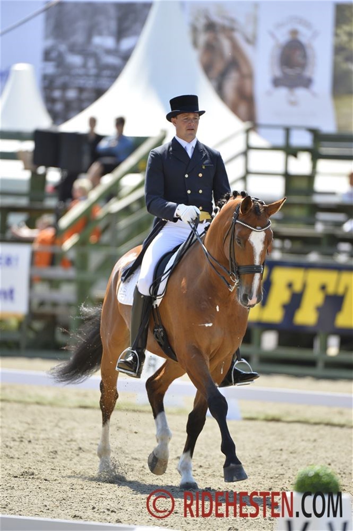 Sune Hansen og Carsoni e. Carson Ask entrede banen og så ud til at være i topform, men pludselig begyndte den brune vallak at skumme rødt. Heldigvis var Sune ikke kommet ind på konkurrencebanen, så han red ud af stadion. Dyrlæge og teknisk delegeret blev tilkaldt og kunne konstatere, at han lige havde sat en tand i tungespidsen. Sune fik derfor lov til at starte sidst. Flotte sidebevægelser, flot skridtprogram med fine skridt pirouetter satte points på kontoen, men en lille tøven ind i den første galoppirouette kostede værdifulde points og parret sluttede i dag på 4. pladsen med 68,772%