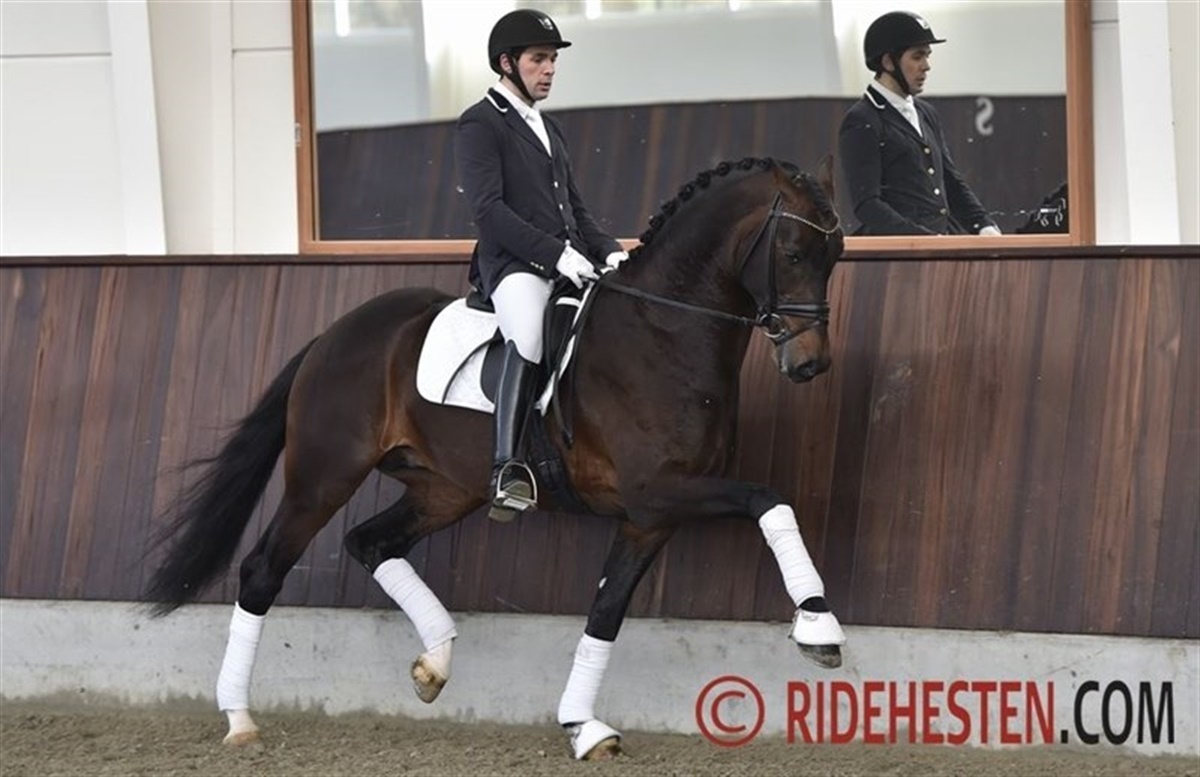 Blandt otte 5-årige dressurhingste af den hollandske F-årgang var danskejejde Franklin e. Ampere/ Ferro fra Helgstrand Dressage. Hingsten blev på fremragende vis fremvist af spanske Severo Jurado Lopez og fik dommerne til at ryste op med nogle af de karakterer, som ikke bliver luftet så hyppigt. Intet mindre end 9,5 fik Franklin for sin travbevægelse. Det blev til et 8-tal for skridt og 8,5 for resten og samlet 86 point. Dermed vandt Franklin dressurklassen for 5-årige dressurhingste, som var sæsonens finale. Han har tidligere vundet kvalifikationen, og blev med sejren i Den Bosch altså samlet vinder.