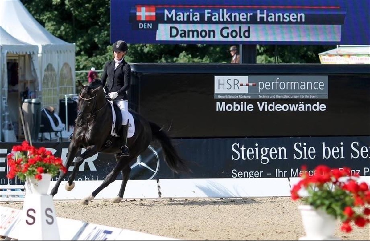 Hingsten Damon Gold e. Damon Hill/Fürst Romancier fra HP Horses leverede også i dag et flot ridt med sin rytter Maria Falkner Hansen, og snuppede en flot 2. plads i Oldenburger Landeschampionat for de 5 års heste. Damon Gold kvalificerede sig til Bundechampionatet i torsdags, hvor han også var på banen.