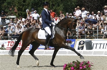 Danske Pernille Ørum red med hesten Lümiere e. Leandro / Reichsgraf sit Grand Prix-program til knap 67%, hvilket rakte til en fjerdeplads. Jeanette Sund scorede med Aquino e. Akinos / Caretino 64,681%. Klassen blev vundet af tyske Ulla Salzgeber og Herzruf's Erbe e. Herzruf / Caletto I med Emma Hindle og hingsten Lancet e. Wenzel / Shogun xx på anden pladsen og østrigske Victoria Max-Theurer med Augustin e. August der Starke / Rubinstein som nr. 3. 1. Ulla Salzgeber - Herzruf's Erbe - 71,532 (DE) 2. Emma Hindle - Lancet - 69,957 (UK) 3. Victoria Max-Theurer - Augustin OLD - 68,553 (AU) 4. Pernille Ørum - Lümiere - 66,936 (DK) 9. Christian Pläge - Regent - 65,702 (CH) 11. Jeanette Sund - Aquino - 64,681 (DK) Ulla Salzgeber fortalte efter sin 71,53% sejr til Eurodressage, at det var en perfekt stævnestart for hende. - Sidste år red jeg stadig lille tur på Herzrufs Erbe og idag har han gået sin første "stor tur", så det kunne faktisk ikke havet gået os bedre idag. På niendepladsen fulgte den tidligere OL-ekvipage fra Schweiz, Christian Pläge med Regent (Resident / Lagano).
