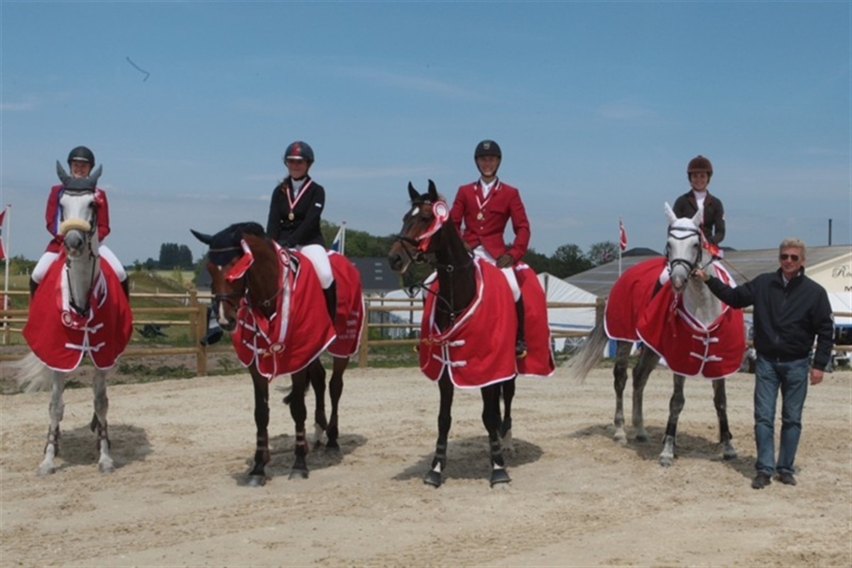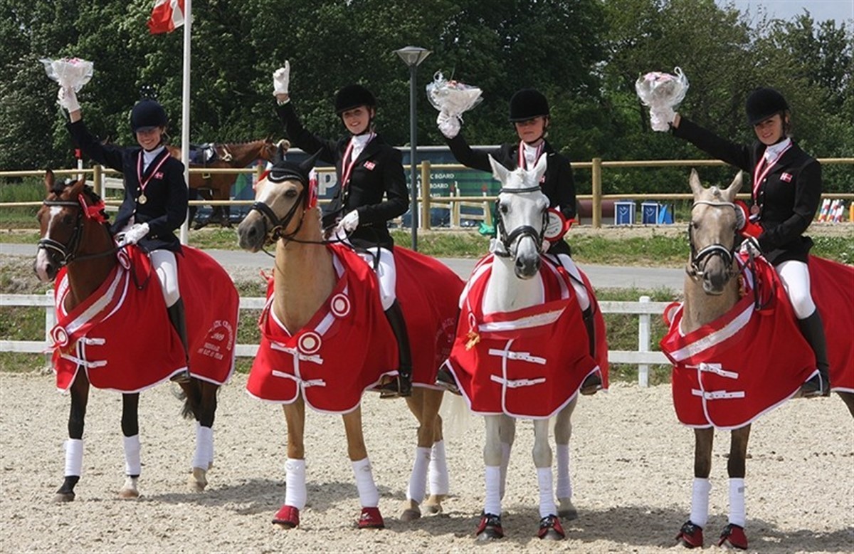 I går vandt de danske dressurpiger 3 x hold guldmedaljer og i dag har kat. II ponyerne også vundet guld for holdet. Der var spænding til sidste danske rytter havde redet, for indtil da lå det svenske hold i spidsen. Ingen kunne slå de danske dressurekvipager ved dette NM, og hermed gør Danmark fuldt hus og har vundet samtlige fire guldmedaljer. På springbanen var det først op til vores danske kat. II ponyer, og som tidligere nævnt vandt de guld i overlegen stil. Dernæst blev det de danske Young Riders, som udsatte publikum for noget mere spænding, da de vandt med kun fire fejl foran Sverige med bare 5 fejl. Ved Juniorrytterne vandt vi endnu en gang, selvom Michala Holm måtte udgå p.g.a. en knækket trense. Men selv ikke et lille uheld kunne stopper de danske juniorryttere, og de vandt med 8 fejl, denne gang foran Norge som fik sølv og bronze til Finland. Tilbage på dressurbanen blev der i dag også dystet individuelt for henholdsvis kat. I ponyer og for juniorer. For ponyrytterne gjorde de dygtige danske ekvipager igen fuldt hus og vandt både guld, sølv og bronze. Det var Anne Fabricius Tange med Tim, som fik guldmedaljen hængt om halsen, mens det blev sølv til Sabrina Barnekow med Vermont og bronze til Rikke Lindberg med Brooklands Moonwalker. Junior dressurrytterne rundede denne flotte eftermiddag af med at vinde guld og bonze. Det blev en flot sejr til danske Cathrine Dufour på Aithon. Sølvet gik til Elisabeth Hjelm og Baltazar fra Sverige, og danske Nanna Skodborg Merrald og Millibar vandt bronze. Dressurholdet kat. II Sara Veronica Raimondi/Aj Golden Jant Alexandra Viola Schaldemose/Højvangs Bondeo Emilie Holm Toft/Golden Starlight Simone Barnekow/Bohemo Geum Junior springholdet: Michala Holm/Stracato Maiken Helbo/Passau Rikke Belinda Barker/Cora Kasper H. Hansen/Cantando Lyngriis Young Rider springhold: Marie Moesgaard/Corland Dane Dalgaard Marie Lunding Hansen/Dansk Avis Truk's Lasall D Katinka Clausdatter Worsøe/Webster Thomas Hougaard/La Kendra