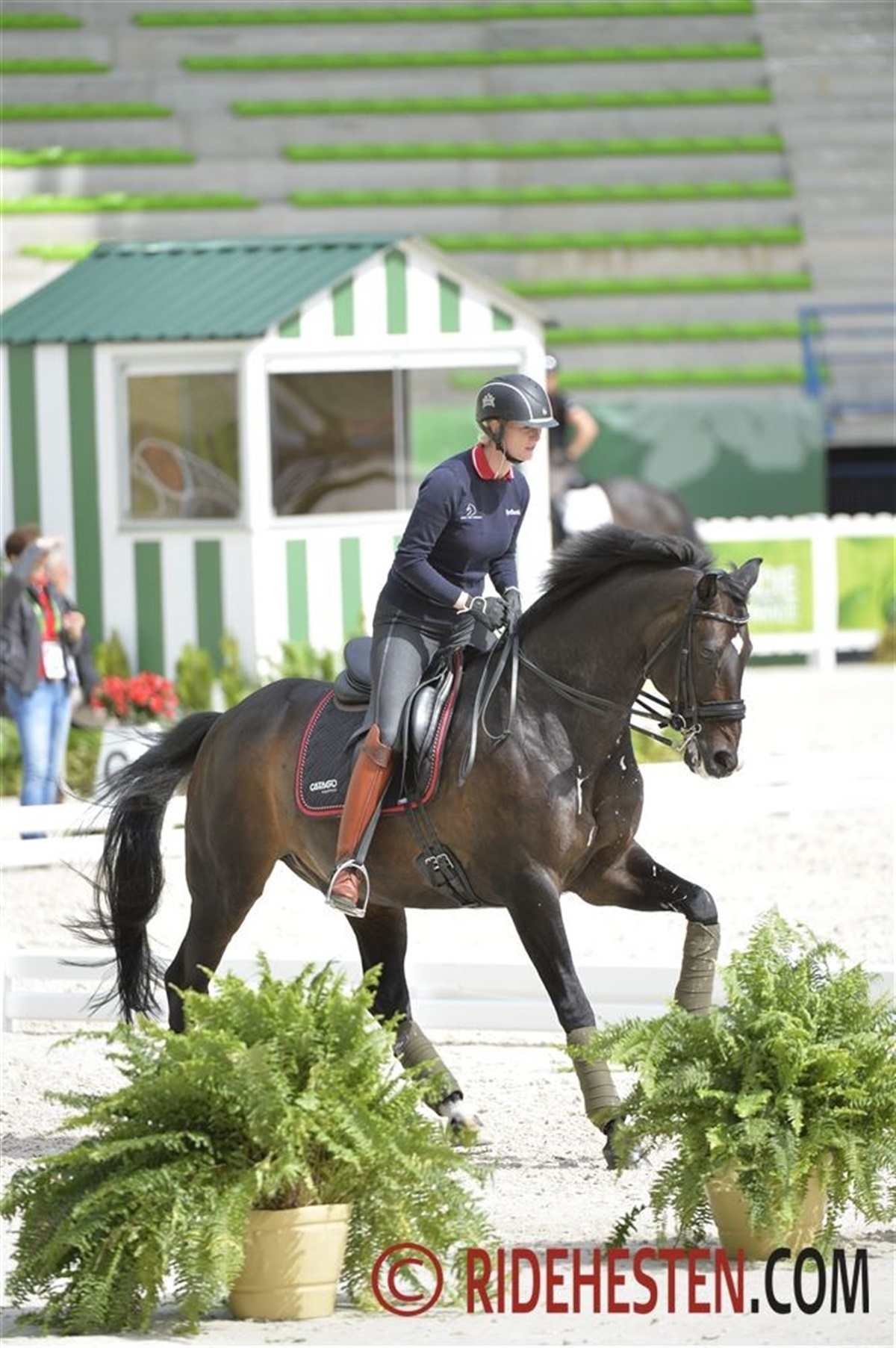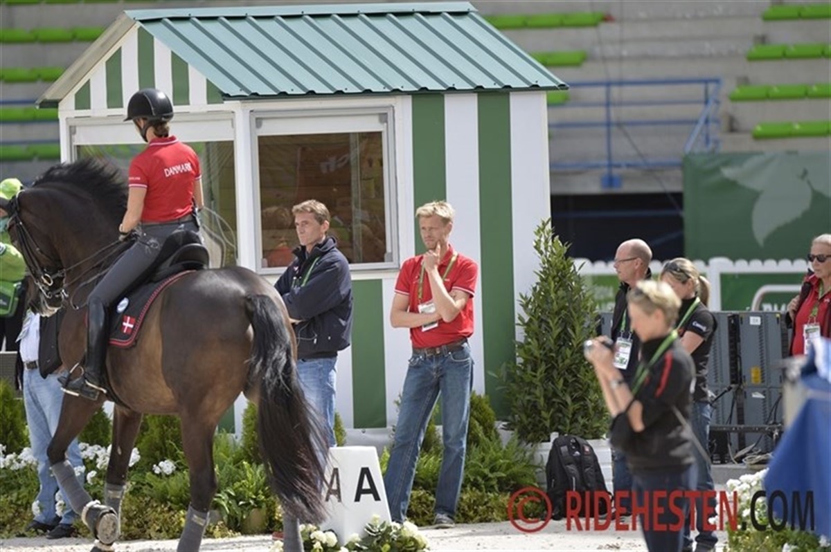 Også Anna Kasprzak var meget tilfreds med dagens træning, modsat Nathalie, så arbejde hun lidt mere intens med Donnperignon inde på banen, for han har et stort energioverskud han skal have bearbejdet: - Jeg syntes han er der, hvor han skal være. Han er rimelig frisk, for den første dag bukkede han så stort, at jeg tabte den ene bøjle og hang ude på siden, og jeg troede faktisk jeg ville ryge af ham, fortæller Anna med et smil. Hun fortæller, at det er rytternes indtryk, at hestene kan lide at være på stævnepladsen, men nu er alle, både ryttere og heste ved at være lidt utålmodige efter at komme igang med konkurrencerne.