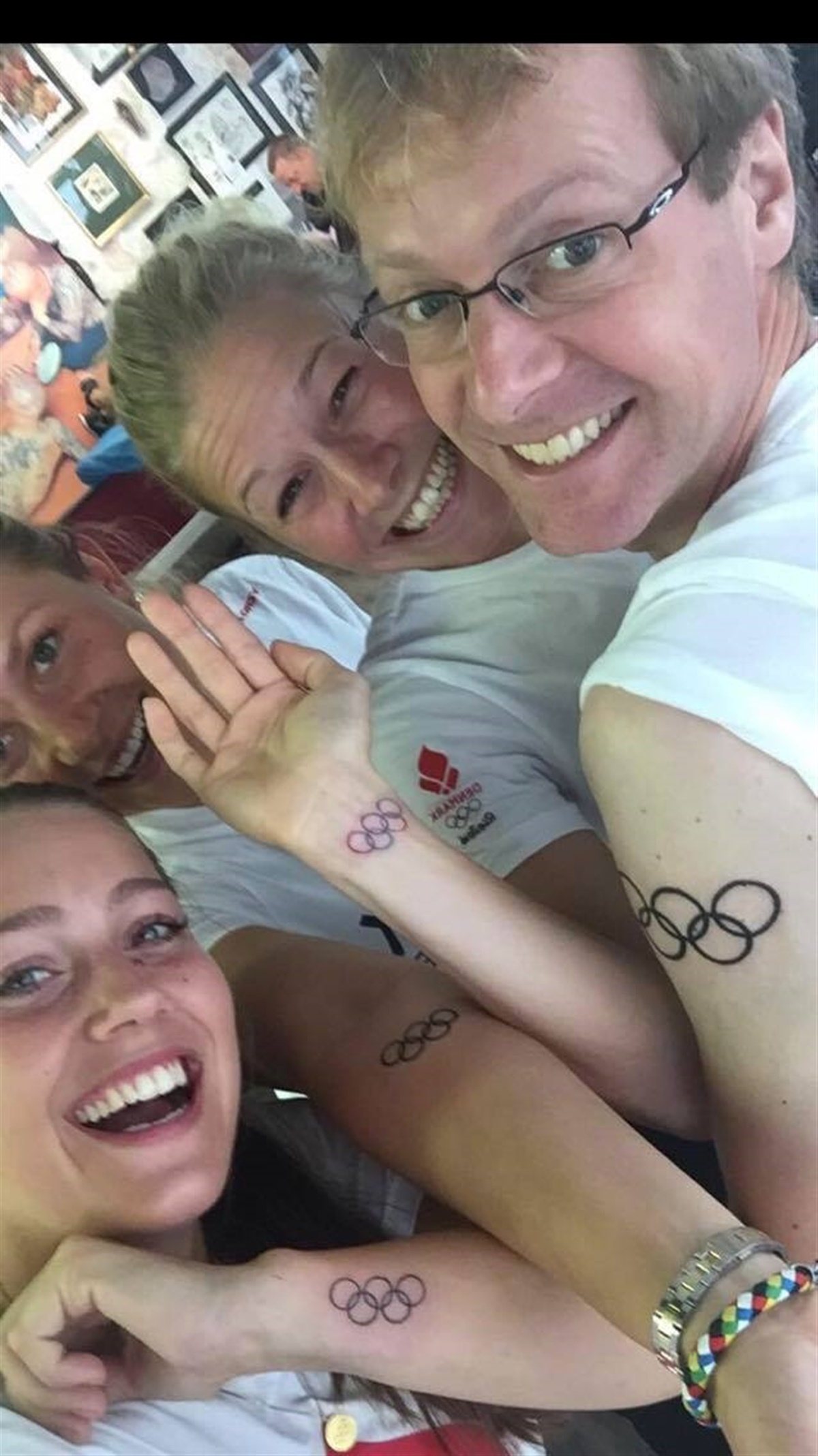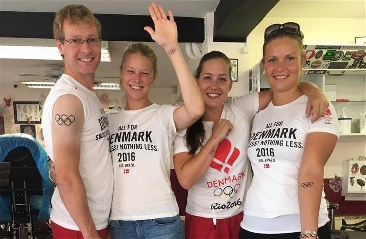 De fire dressurryttere Agnete Kirk Thinggaard, Anna Kasprzak, Cathrine Dufour og Anders Dahl, der til sammen sluttede på en sjetteplads i holdkonkurrencen ved OL 2016 i Rio de Janeiro, er i dag i Aarhus for at være sammen. De har her i formiddag fået foreviget deres fælles bedrift og OL-oplevelse med en tatovering af de olympiske ringe.