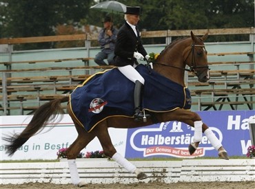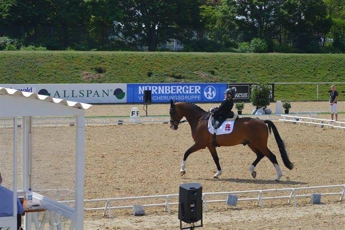 Første danske ryttere i ilden i Mannheim i dag var grad II-rytteren Caroline Cecilie Nielsen, der med Leon e. Lord Swiss/Scampolo red sin kür til 73,350% og blev 4.