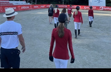 Efter de to første danske juniorryttere har været på banen, ligger holdet på en fjerdeplads, mens føringen indtages af Tyskland efterfulgt af Holland og Østrig. Det er Emilie Holm Toft og Alexandra Sørensen, der repræsenterer det danske juniorhold imorgen, hvor afgørelsen i holdkonkurrencen falder for både junior- og ungrytterne.