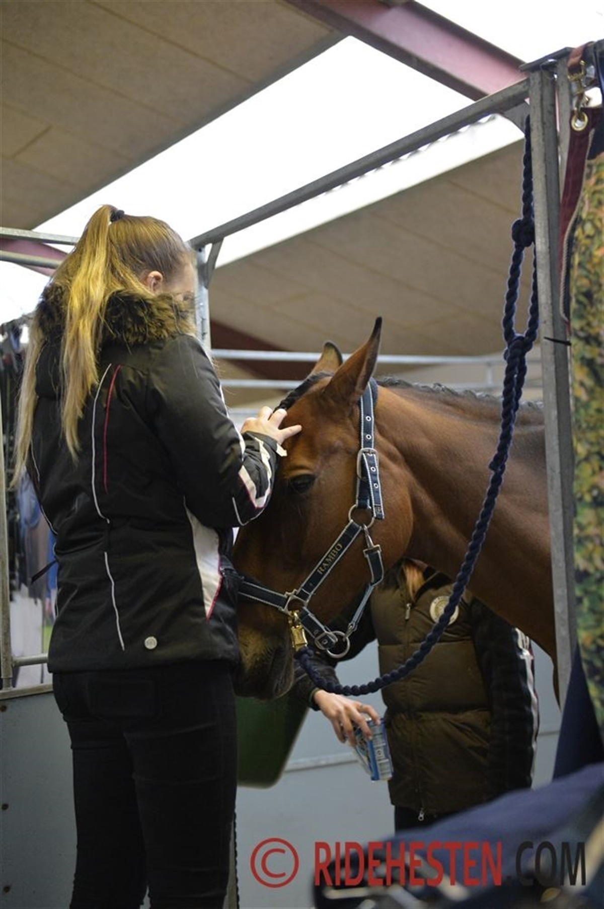 En af de ryttere, som er igang med at flette i stalden er Rikke Rothe Nielsen, hun har Syvhøjegårds Frinds Forever til start i springklasserne. - Det er så specielt og godt at ride her, fortæller Rikke. Sidste år var første år hun selv red ind på banen under Dansk Varmblods Hingstekåring, og det er meget anderledes end ved de fleste stævner. En super stemning og mange mennesker i hallen, det giver lidt ekstra pres, men det har hun ikke noget imod. Hun hygger sig også med at møde og tale med de andre ryttere og grooms. Også hun roser de gode forhold overalt, mens hun med rappe fingre får styr på de sidste fletninger på sin skimmel.