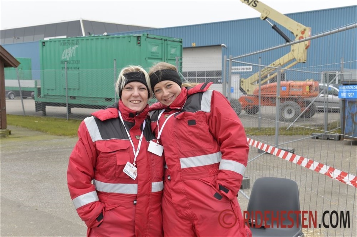 De internationale stalde er indhegnede, for her må man ikke komme ind uden et specielt armbånd. Det er Dansk Varmblods hjælpere som bemander posten dag og nat. – Vi har tre eller seks timers vagter – tre timer om dagen, så vi kan nå at se noget af alt det der sker inde i hallen, fortæller Rebekka Doniari og Kristine Leth (th.) Det er en kold tjans, men de klager ikke!