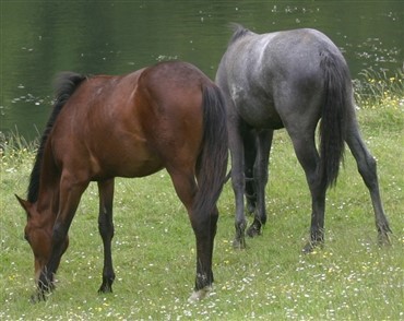 Hvert år lukkes Kongehusets kladruberheste på græs på store græsfyldte marker ved Karlebo i Nordsjælland, hvor de smukke heste nyder deres sommerferie.