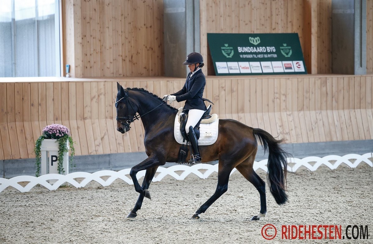 To heste fra samme opdrætter besatte de næste to pladser. Andenpladsen gik til norske Caroline Hansen fra Wind Equestrian med Lumiere Unik e. Franklin/ Blue Hors Don Romantic (opdr. Stutteri Unik v/ Morten Skov), der er ejet af opdrætteren. Ekvipagen opnåede 83,429 med 85 i galop som højeste score.