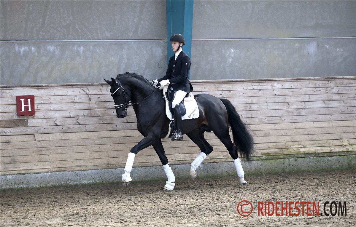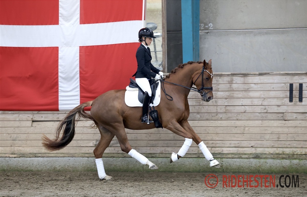 Tredjebedst på landsplan kom også til start i Billund. Det var nemlig, med Anders Hoeck i sadlen, Hesselhøj Delany e. Hesselhøj Donkey Boy/ Sezuan. Anders har selv opdrættet Delaney som opnåede 880 points.