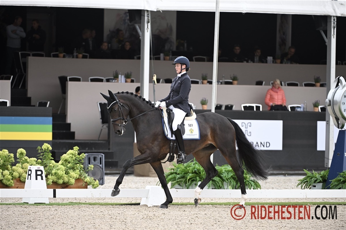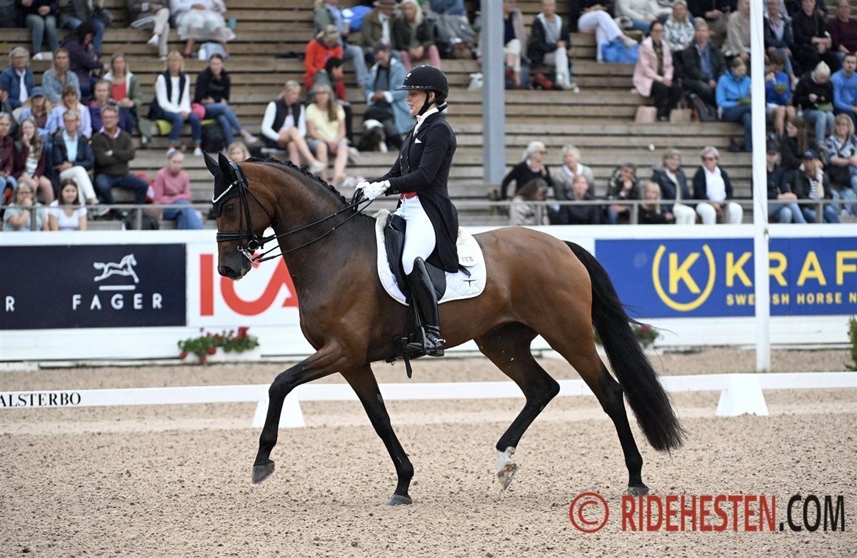 Reserven hos 5-års hestene, Soretto, er efter DV-elitehingsten Blue Hors St. Schufro. Rytteren er Yvonne Österholm. Foto: Ridehesten.com/ Kristine Ulsø.