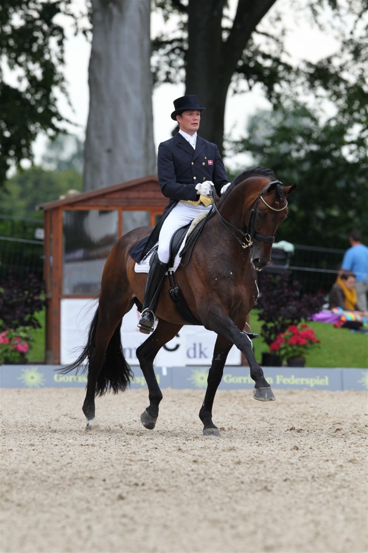 I sidste weekend leverede de danske junior- og ungryttere et helt fantastisk resultat på Broholm med otte EM-medaljer, og i denne weekend ser det ud til, at det igen er ungdommen som sætte dagsordenen. Ved senior DM med 25 startende i den indledende Grand Prix-klasse blev det til en populær og særdels velfortjent sejr til Lisbeth Seierskilde Pedersen og Jonstrupgårdens Raneur, som hun og hendes familie selv har opdrættet. Lisbeth opnåede 71,9% efter et flot og sikkert program, hvor Raneur fik vist dommere og publikum sine evner for passage. 25-årige Lisbeth Seirskilde træner hos Finn Greve og hos sin mor Susanne ligesom hun også er en del af den danske bruttotrup og dermed også får mulighed for at træne hos landstræner Rudolf Zeilinger. Det er også Rudolf Zeilinger som står bag mesterskabsklassens nr. to; 21-årige Daniel Bachmann Andersen og guldmedaljehoppen Donna Silver. Daniel er i lære som berider hos Zeilinger, og i år har han Grand Prix-debuteret Donna Silver og den skimlede hoppe imponerede i dag med et sikkert galopprogram og en meget flot, markeret og udtryksfuld passage. Sidste års bronzevinder Sune Hansen og avlshingsten Blue Hors Romanov viste egentlig et meget fint Grand Prix-program, hvor hingstens udtryk, holdning og gangarter rigtig kom til deres ret, men desværre indløb der nogle småfejl, der kostede i det samlede resultat. Det lykkedes dog for Sune at holde fast i tredjepladsen. Sidste års danmarksmester Anne Van Olst havde hænderne fulde med Exquis Clearwater i dag, han var overfrisk og det kostede i det samlede regnskab, og dermed måtte hun tage til takke med en foreløbig 6. plads. Nathalie zu Sayn Wittgenstein/rigoletto og Anne Troensegaard/Seduc kom ind på 4. og 5. pladsen. Anden afdeling af det danske mesterskab for seniorer forventes at starte i morgen lørdag kl. 11.50.