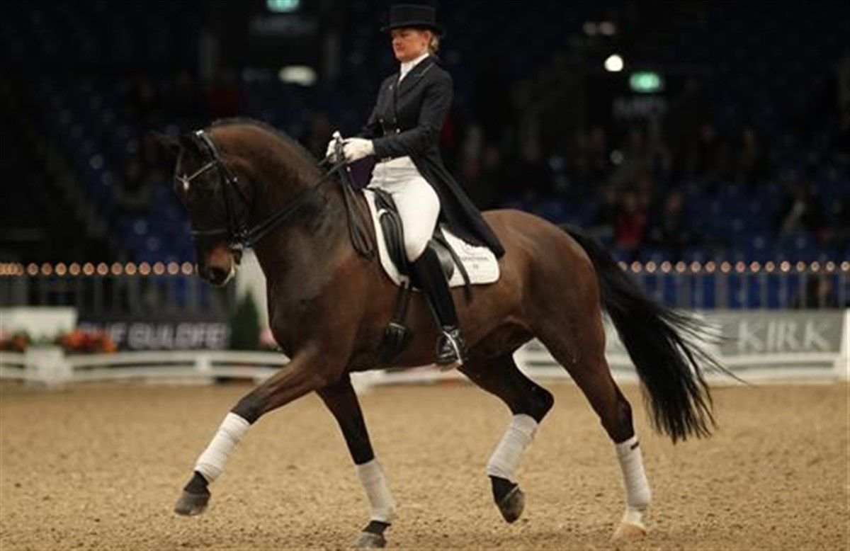 Edward Gal og Blue Hors Romanov e. Rohdiamant blev mødt af et begejstret bifald, allerede da de entrede arenæn som klassens 2. startende ekvipage. Men lynhurtigt blev der helt stille i hallen – man fik indtrykket af at publikum holdt vejret af bar forventning. Gal og Romanov leverede et så godt som fejlfrit program, med flotte piaffe- og passageture, og ikke mindst de imponerende sidebeveægelser vi kender fra Romanov. Men det var også et program hvor man fik fornemmelsen, at der er meget i den nye ekvipage, end der blev vist i dagens program. Der blev ikke lukket op for hanerne, men derimod redet pænt og fornuftigt i ekvipagens stævnedebut. Hingsten virkede afslappet og tilpas under sin nye rytter, og det ser ud til at samarbejdet mellem de to fungerer særdeles godt. Programmet blev honoreret med 75,79%, hvilket var nok til at sikre ekvipagen en komfortabel sejr i klassen. Nr. 2 blev Anette Ejlersgaard på Gørklintgårds Dublét e. Diamond Hit, der red et harmonisk program, og bl.a. fik vist rigtig gode piaffe- og passageture. Ridtet blev af dommerne vurderet til 68,86%. Der var også debut til endnu en avlsgodkendt DV-hingst i klasse. UNO Don Diego e. Dressage Royal fra Højagergård Hingstestation havde med Ditte Mikkelsen i sadlen sin debut i Intermediaire II, og det var en rigtig fornuftig debut, der af dommerne blev honoreret med 63,33%, hvilket gav ekvipagen en 4. plads. Sidste rytter i Rambøll Intermediaire II var fødselaren Helene Melsen, der fejrede sin 26-års fødselsdag med at ride Akeem e. Lobster til 64,12% og en 3. plads i klassen.