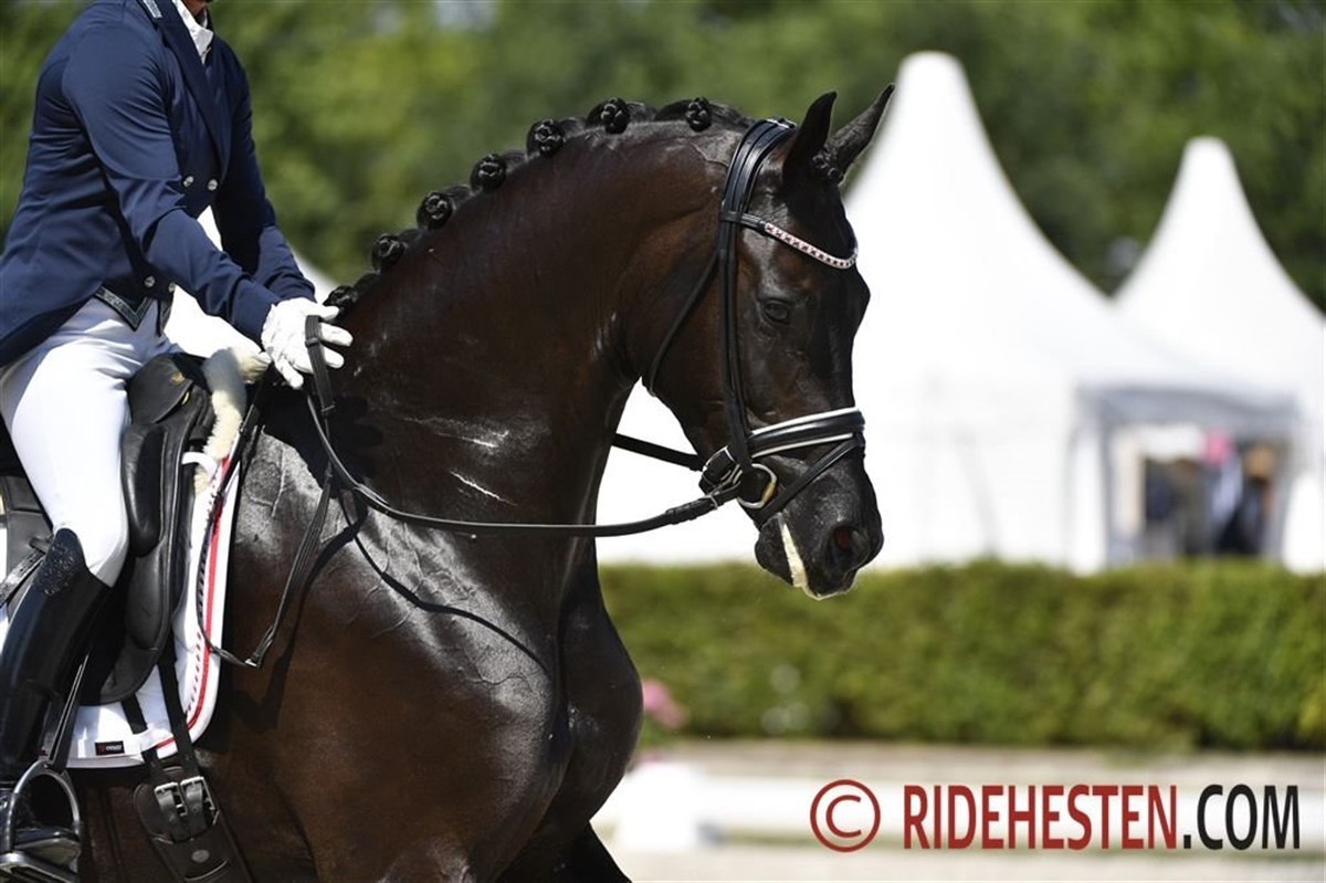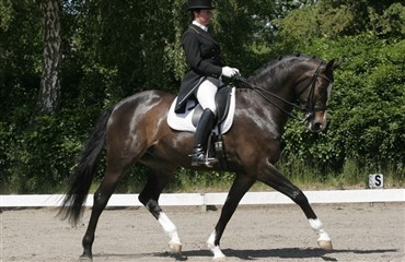 Delizia e. Fürstenball/ De Noir (opdr. Lotte Sophia Liv Kulle), der via sin far er nært beslægtet med Carina Cassøe Krüths tophest Heiline's Danciera e. Fürstenball/ De Niro (opdr. Stald Heiline), er flyttet ind i stalden hos Helgstrand Dressage.
