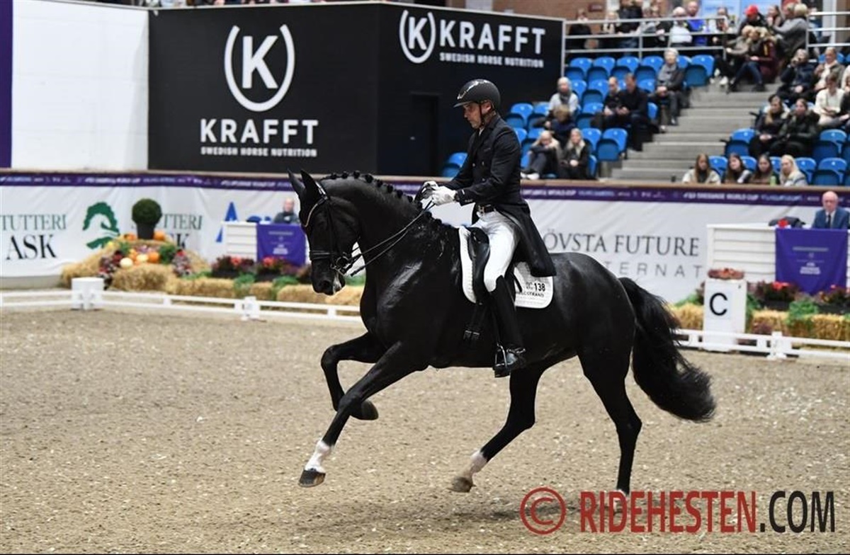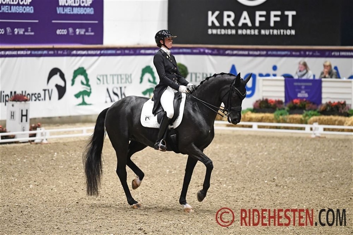 Der stod også Danmark på de efterfølgende 3 pladser. Og alle tre heste er World Cup debutanter. Nanna Merrald Rasmussen kom ind på andenpladsen med avlshingsten Blue Hors St. Schufro, som hun selv har produceret til den store sport. Hendes øjesten, som hun kalder ham, og sammen med sin søster Sandra har hun lavet en kür til St. Schufro.