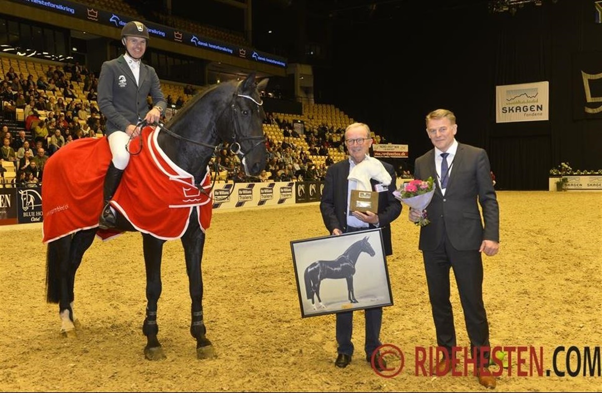 Stutteri Ask berider Søren Møller Rohde kunne ikke ride i Herning på grund af en fibersprængning, men han red selv Favorit Ask ind i Boxen for at modtage publikums hyldest. Og hingstens ejer Kjeld Kirk Kristiansen modtog selv den flotte statue som bevis på titlen – en statue han flere gange tidligere har modtaget for elitehingste enten fra Stutteri Ask eller Blue Hors.