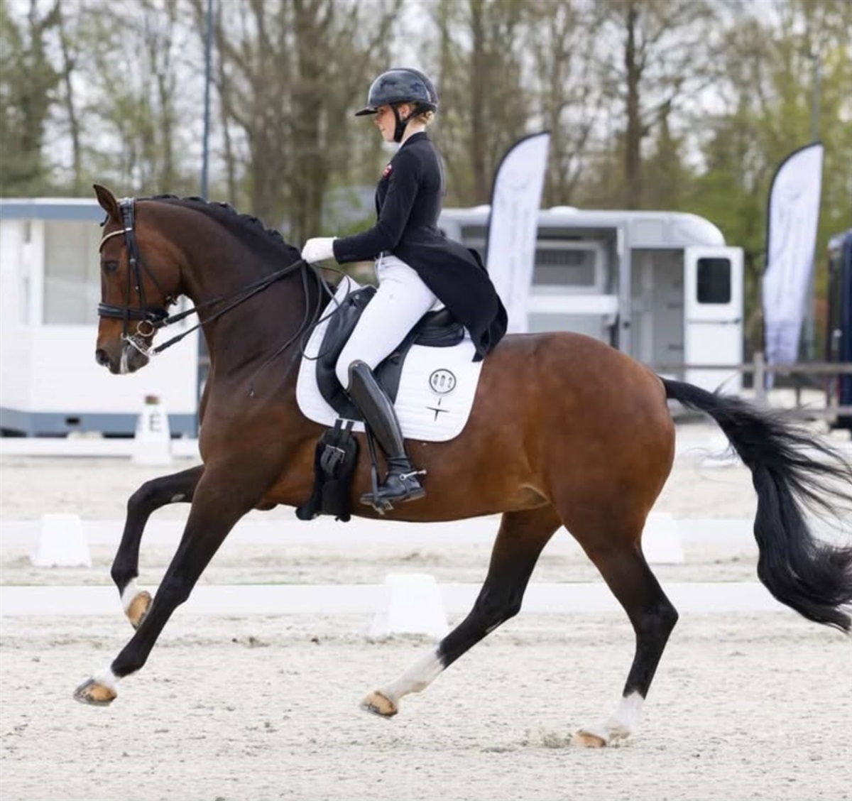 Herefter fortsatte stævnedagen med den 2-stjernede Intermediate II, hvor de gode takter for Anne-Mette Strandby Hansen og EVO Schubidoo e. Blue Hors St. Schufro/ Blue Hors Hotline (opdr. Stutteri EVO) fortsatte. I denne weekend har ekvipagen nemlig international debut, og efter gårsdagens flotte tredjeplads fulgte hun i dag op med en endnu stærkere præstation, der blev belønnet med 68,137% og en flot andenplads.