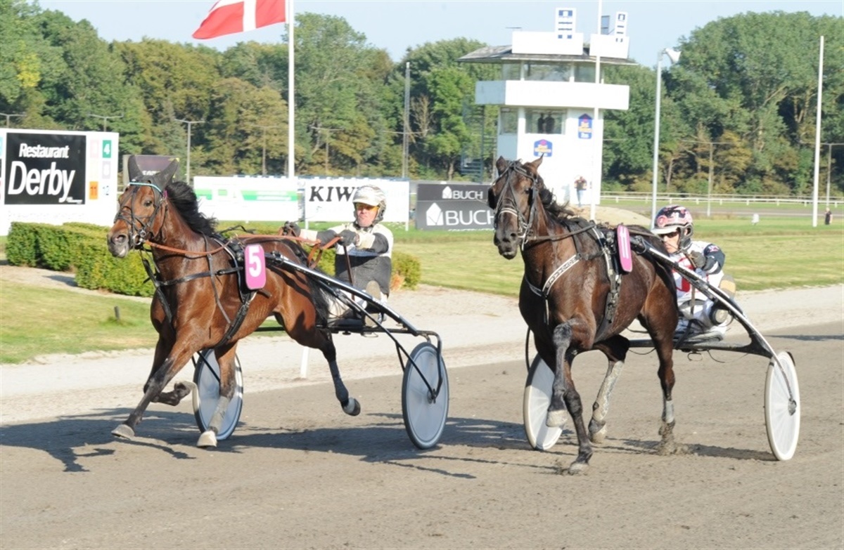 Det er travtræner Kaj Jensen fra Århus, som træner alle seks heste, og Jensen havde en forrygende dag, idet han også træner vinderen af DM for 5-årige heste, Victor Rush, som kunne vinde med René Kjær i sulkyen. Her var præmien 50.000 kr. En god dag på kontoret må man sige...