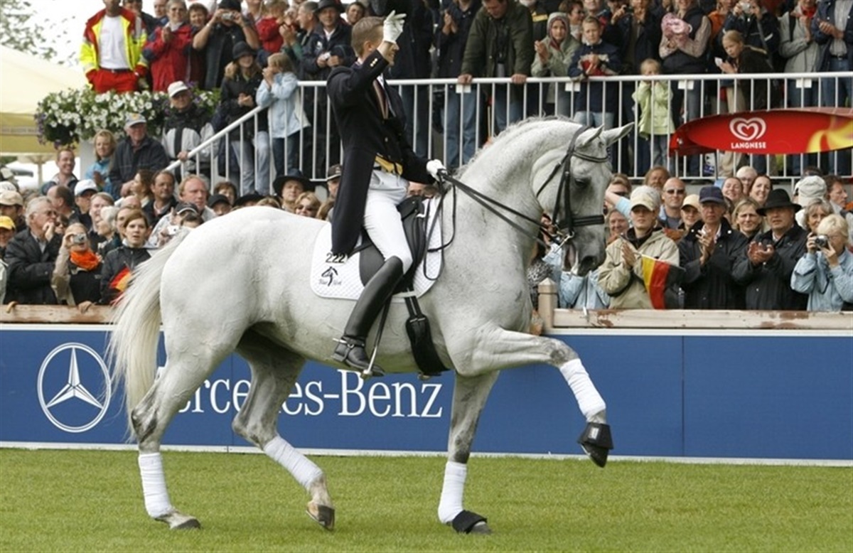 Nyheden om, at et af dressursportens største ikoner i de seneste år, og sikkert den mest kendte og feterede hoppe, Blue Hors Matiné, idag har taget sin sidste indånding, vil uden tvivl nå hele verden rundt på kort tid. Matiné var elsket og beundret af dressurentusiaster jorden rundt. En forbipasserende bemærkede, at der var noget alvorligt galt med den hvide hoppe på folden og alarmerede omgående personalet i ridehallen hos Blue Hors Aps. - Der var ingen tvivl om, at Matinés højre forben var brækket ved knæet, og dyrlægen konstaterede straks, at der absolut intet var at gøre for at redde hendes liv, fortæller direktør Esben Møller. Knapt 13-årige Blue Hors Matiné e. Blue Hors Silver Moon/Matador, opdrættet af Inger B. Katballe, stod netop overfor at skulle ifoles og forhåbentligt at gøre karriere i avlen. Hoppen har også en halvsøster, der har været international dressurhest på højeste plan, så forhåbninger til at kunne bringe Matinés stærke aner videre var ikke ubegrundede. Hoppens sportslige karriere har ikke været lang, men af sjældent store dimensioner. Under sin faste rytter, tidligere Blue Hors-berider Andreas Helgstrand, gjorde hoppen kometkarriere og opnåede på rekordtid at blive en af verdens mest feterede dressurheste og uden tvivl den mest kendte hoppe i sporten. Ved verdensmesterskabet WEG 2006 halede den unge danske ekvipage ind på hele verdenseliten og vandt mesterskabets indledende Grand Prix på det enorme stadion i Aachen. I Grand Prix Special vandt de bronze og i Grand Prix Kür vandt Matiné og Andreas sølvmedalje. Deres Kür-ridt blev hurtigt den mest sete dressurvideo på internettet og har på portalen Youtube været set næsten ti millioner gange! Det er med stor sorg, at Blue Hors Aps i dag har måttet tage afsked med deres pragtfulde hoppe, og det er uden tvivl en nyhed, der vil røre hestefolk og dressurentusiaster verden over. Se videoen igen og bliv dybt rørt!