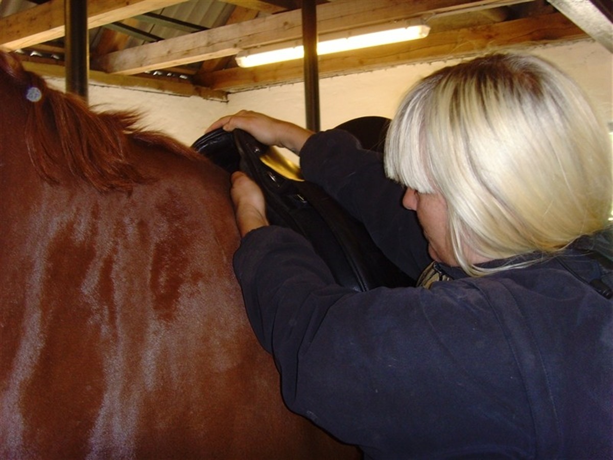 "Jeg har altid undret mig over hvorfor en sadelomstopning skulle tage 14 dage, når det egentlige arbejde med sadlen tager omkring tre timer", udtaler Charlotte Knigge. "Mit mål var, og er, at få afhjulpet problemet hurtigst muligt. Derfor har jeg det sidste års tid arbejdet med sadlerne i stadlen samme dag, som jeg besøger kunden. En ide jeg har taget med mig fra min mester i Sverige. Og fra mit sidste kursus i England". "Fordelen ved at omstoppe sadlen i stalden er, at man har hesten lige ved hånden, og derfor har en meget større chance for at få det mest optimale resultat inden man forlader stedet igen. Samtidig kan rytteren også være med ved at sætte sig op i sadlen og mærke efter om balancepunktet føles rigtigt, og om hesten går frit og ugeneret. Det er jo trods alt rytteren der kender hesten bevægelser bedst". Hvad skal man så forvente når Charlotte kommer på besøg? -”Når jeg besøger en kunde bruges den første times tid på at skrive en journal over hesten, mærke ryggen efter for ømheder, se hestens bevægelser uden rytter, flekse hesten igennem for at se om den er stiv og tale om hestens fortid og om hestens nuværende stand. Jeg gør det for at vide så meget som muligt, og derved at kunne hjælpe hest og rytter så godt og grundigt som muligt", fortæller den mobile sadelmager. - "At lægge en sadel op på ryggen af en hest på en staldgang fortæller mig kun om sadlen kan være et muligt emne. Det er først når rytteren rider i sadlen, at beviset kommer. Der er flere faktorer der spiller ind ved sadelprøvning. Rytterens vægt i sadlen ved hesten i bevægelse er meget afslørende. Ved mine besøg skal der altid rides!" - "Kravene for mig som sadelmager er at det produkt jeg vil videregive skal tale for sig selv. Altså når man bruger de lædervarer eller sadlen efter omstopning, som jeg har haft i hænderne, så skal resultatet kunne ses, føles og mærkes nu og her", siger Charlotte. Hele sadel-seancen inklusive omstopning tager ca. 3 timer fra Den Mobile Sadelmager kommer til hun er på vej videre til næste hest.