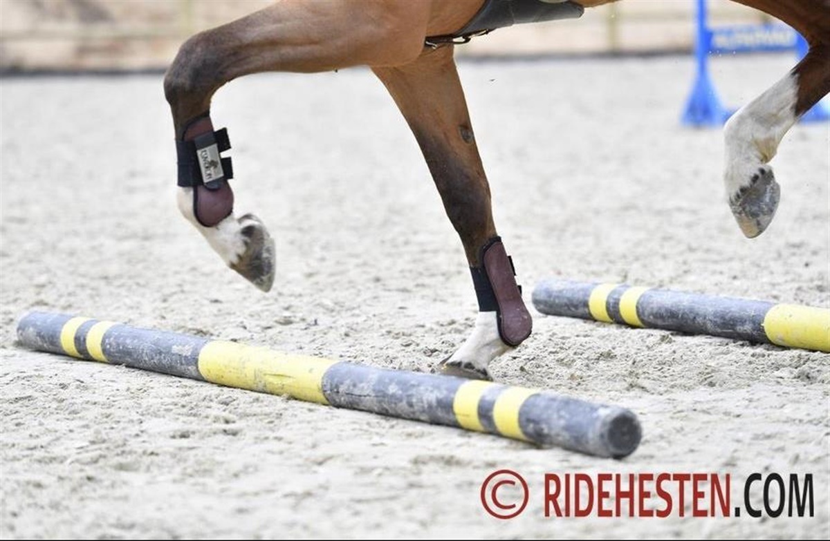 Når du begynder at trave, så start fra begyndelen igen med en enkelt bom. Og bliv ved med det, indtil hesten traver roligt over bommen, herefter kan du langsomt begynde at lægge flere bomme på jorden.